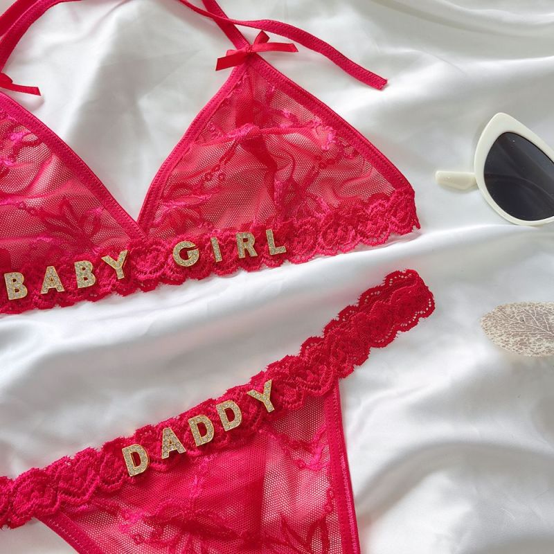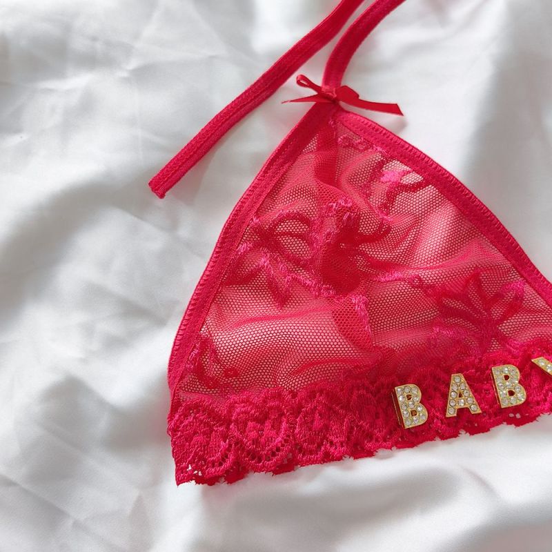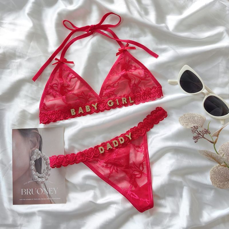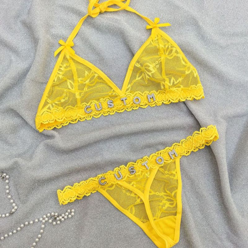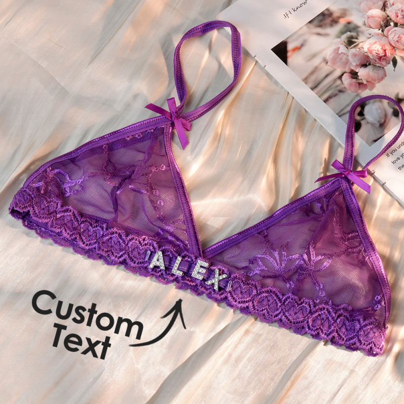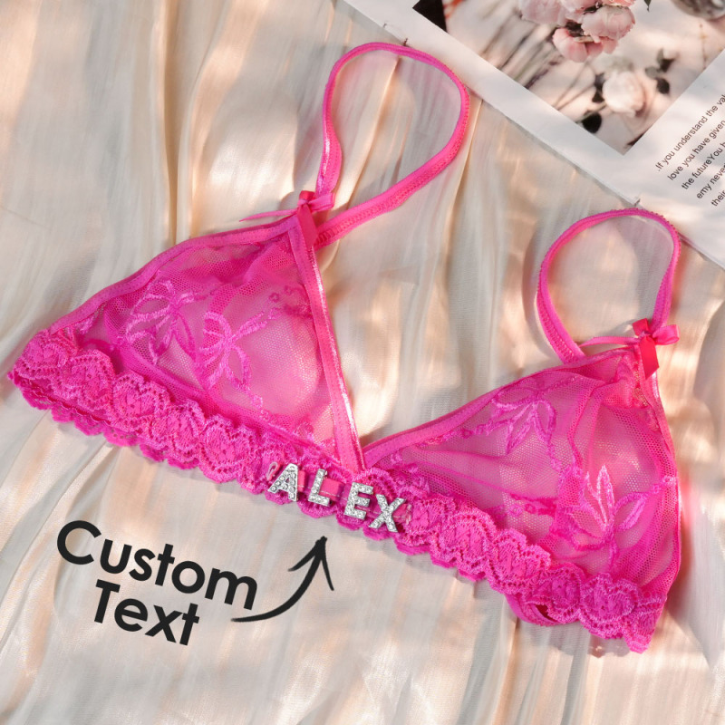 Conjunto De Roupa Íntima De Renda Personalizada Lingerie E Tangas Com Nome De Letra De Cristal Renda Roupa Interior Transparente Presente Para Ela