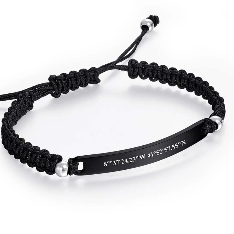 Você pode pesquisar o endereço e gravamos as coordenadas de latitude e longitude na barra desta pulseira. É uma das melhores ideias de presentes para homens no aniversário, dia dos namorados ou aniversário.