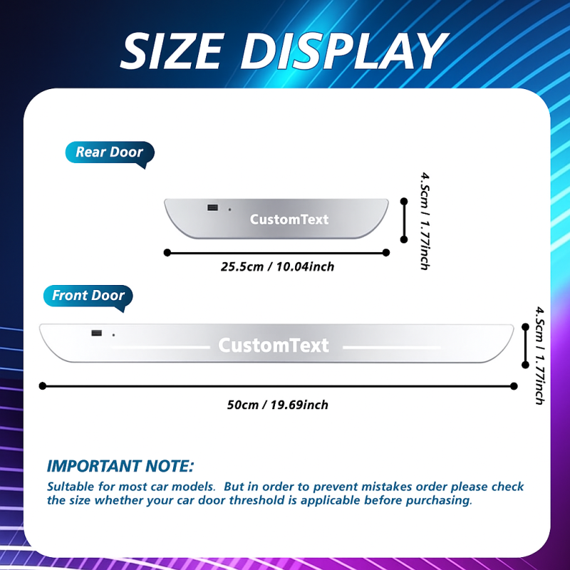*O tamanho da nossa lâmpada automotiva não pode ser alterado. Adequado para a maioria dos modelos de carro. Mas, para evitar erros de pedido, verifique se a soleira da porta do seu carro é compatível antes da compra.