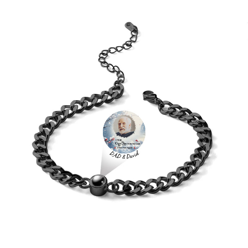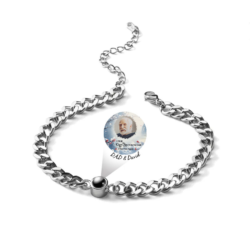 Diga a alguém especial o quanto você a ama com esta elegante pulseira de projeção fotográfica. Basta segurar o pingente contra uma fonte de luz e ele projetará a foto. Um presente perfeito para aniversários, casamentos, Dia das Mães, Dia dos Namorados e Dia de Natal. Recomenda-se remover a pulseira quando estiver perto de água ou em qualquer circunstância em que a pulseira possa entrar em contato com água ou óleos corporais.