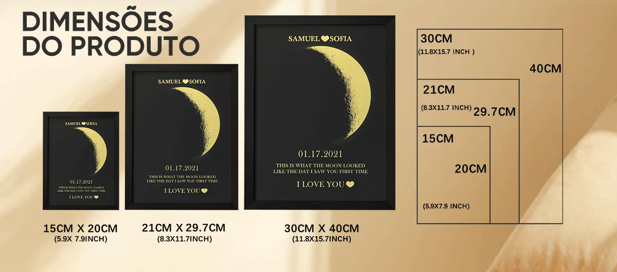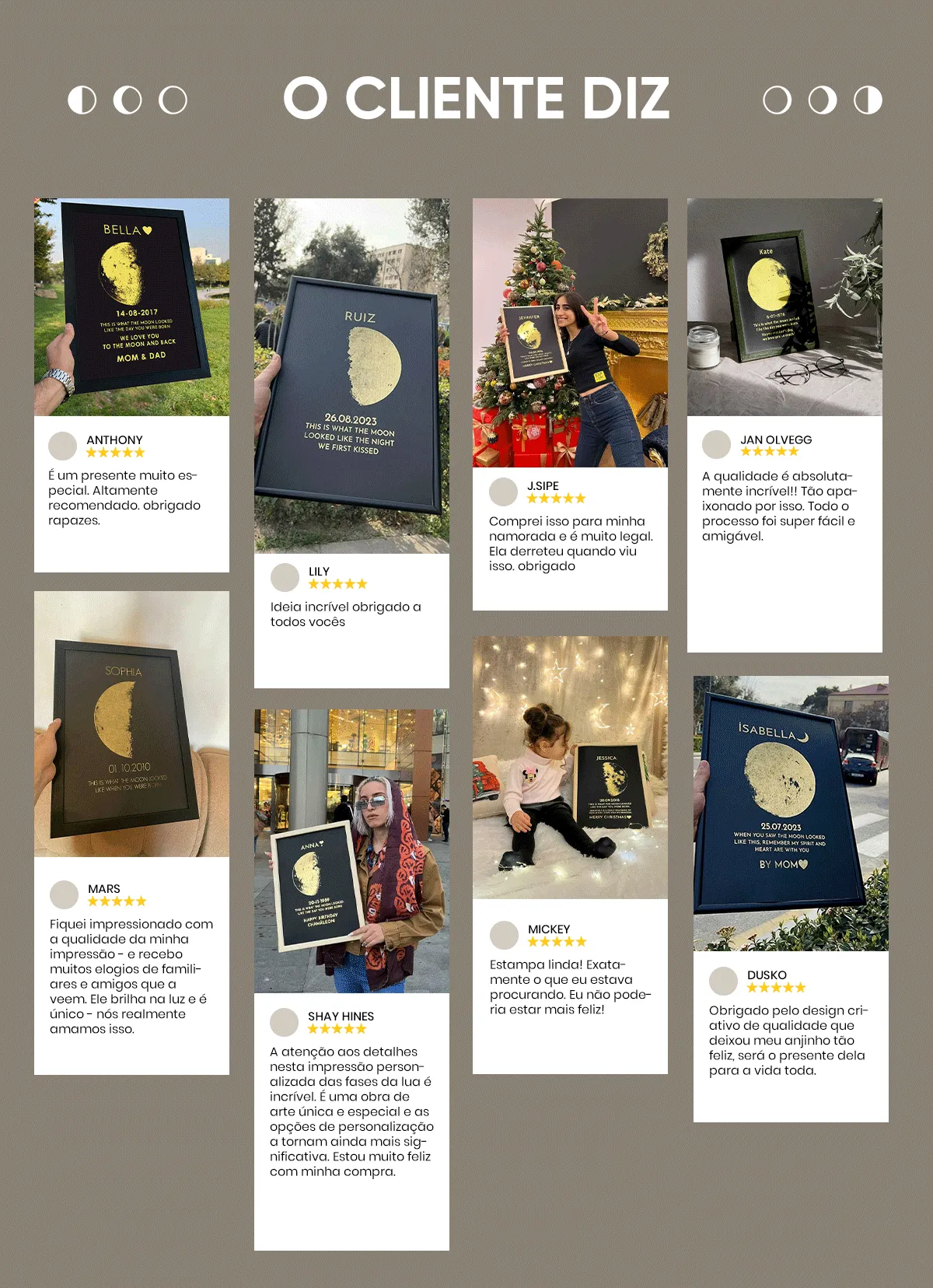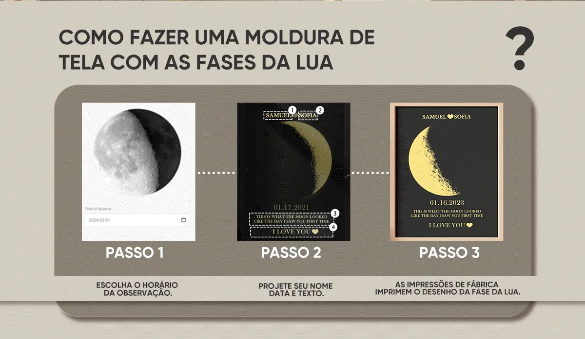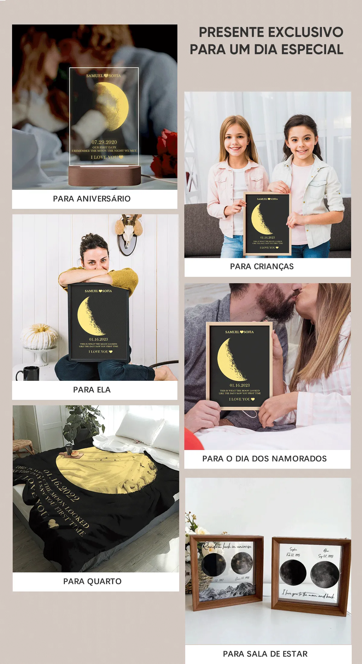 Moldura personalizada com luz de espelho de fase da lua. Quando a luz é apagada, é um espelho, e quando a luz é acesa, o padrão aparece. Ganhe um presente para alguém que você ama. Ele verá sua surpresa oculta ao acender a luz. Este candeeiro pode ser usado como espelho para uso diário ou como enfeite para decorar a sua casa. Adequado para vários presentes de férias, um presente criativo perfeito. Aprenda as fases lunares e os nomes personalizados com nossa lâmpada personalizada de fases e nomes da lua. Insira uma data de nascimento para vivenciar o ciclo da lua e descobrir como é viver na lua. Com oito fases distintas e texto personalizável, esta moldura é uma adição educativa e única à coleção de qualquer entusiasta do espaço.