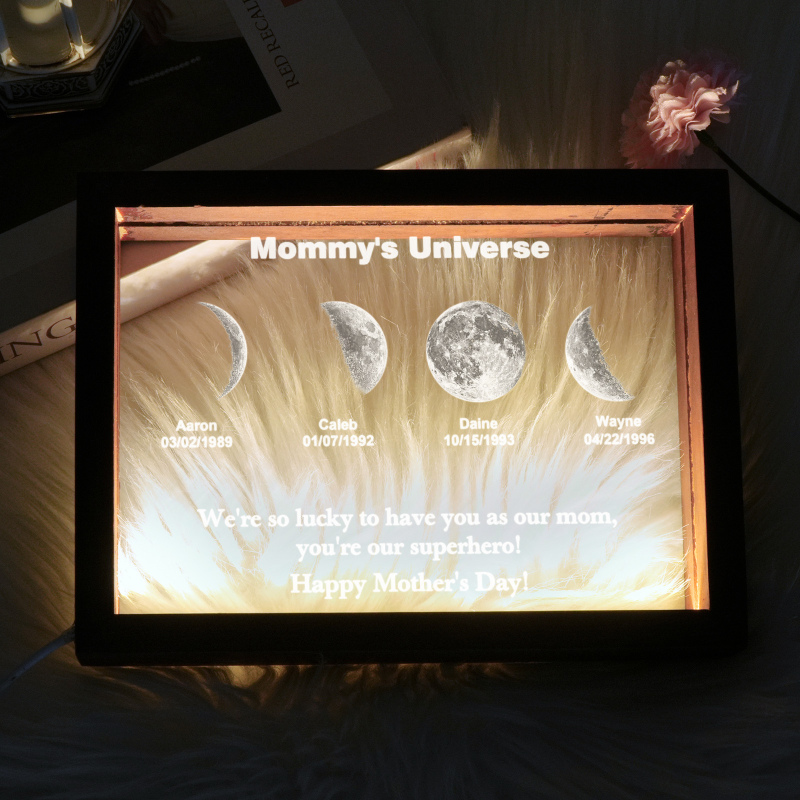 Esta luz noturna exclusiva é a maneira perfeita de celebrar os momentos especiais da vida, tornando-se um presente de Dia das Mães inesquecível para sua mãe. À medida que a lua passa por suas fases, ela simboliza tempo, crescimento e conexão, assim como o amor de uma mãe.