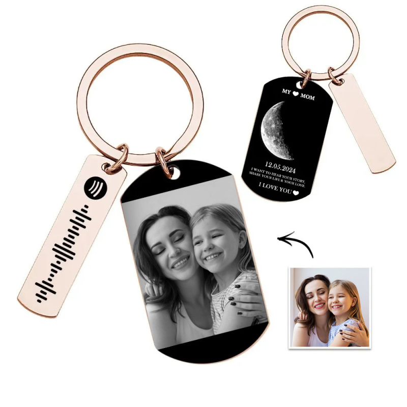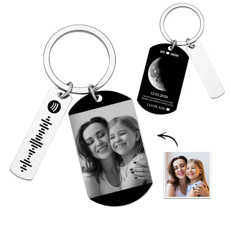Chaveiro com código Spotify da fase da lua personalizado, escolha qualquer título de música, nome do artista e fotos favoritas que desejar, tudo pode ser impresso e você pode gerar um código Spotify exclusivo. Observe que você deve escanear o código no aplicativo Spotify, depois de escanear o código no Spotify, sua música começará a tocar imediatamente. Perfeito para aniversários, presente de aniversário, presentes de feriado, presente de namorado, presentes de casal, presente de fãs de música. o amor, promessa, família ou amizade entre você e o sortudo destinatário. Adequado para pendurar em chaveiros, mochilas, carros.
