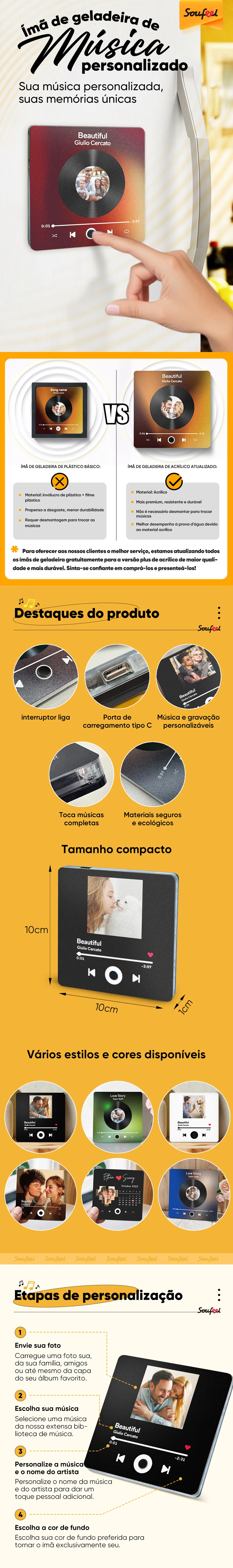 Exclusividade: O único ímã de geladeira musical personalizado do mercado torna este presente uma testemunha única do seu amor.