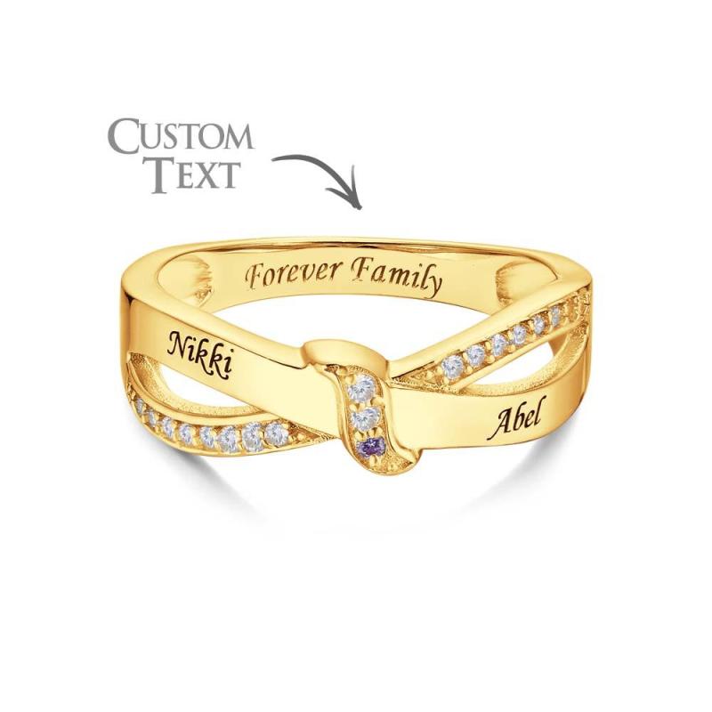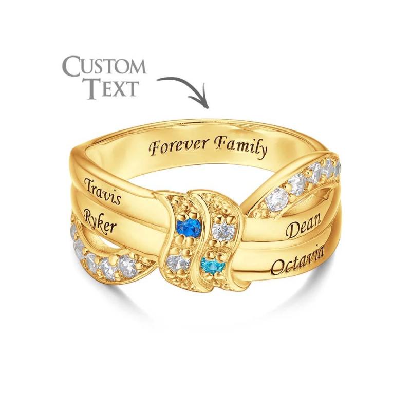Anel De Pedra De Aniversário Com Nome E Texto Personalizado, Banhado A Ouro 18k, Anel De Família Personalizado, Presente Para Ela