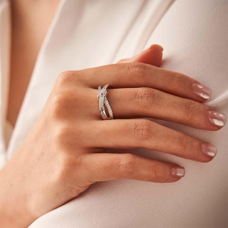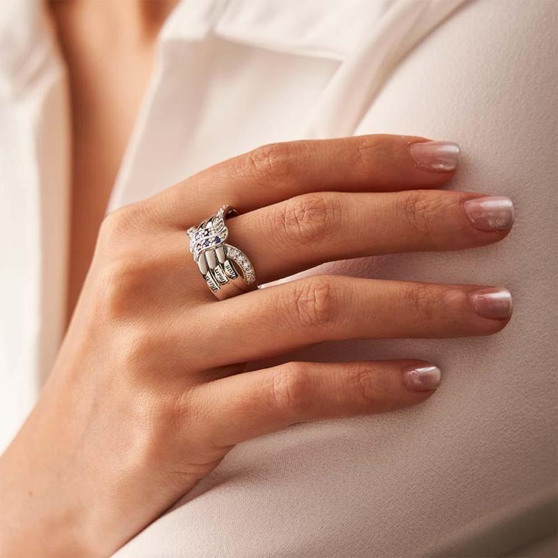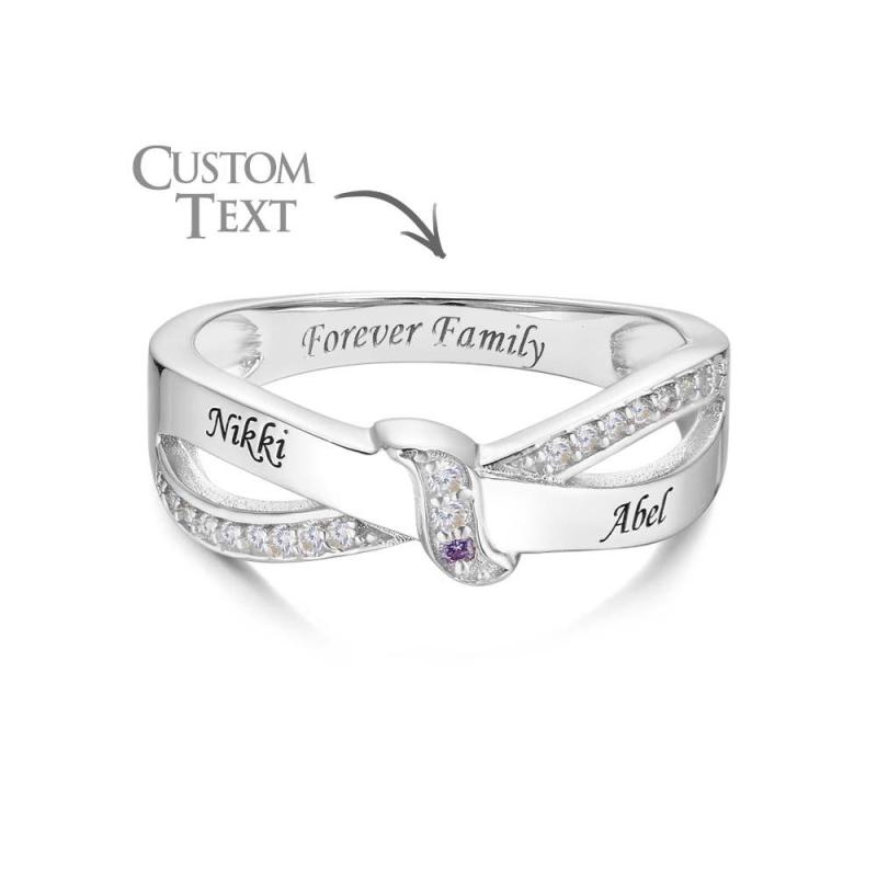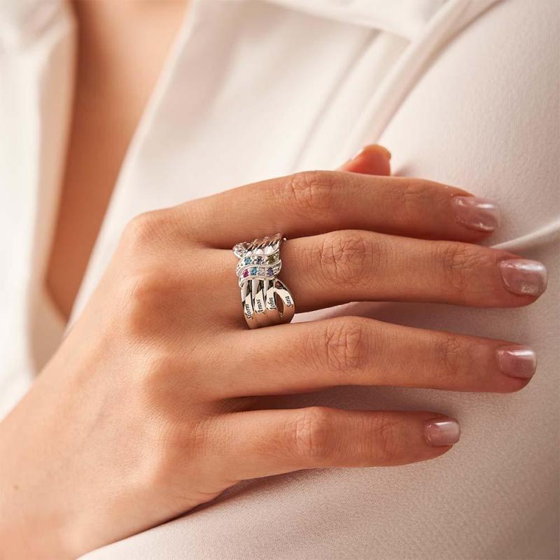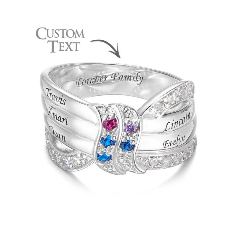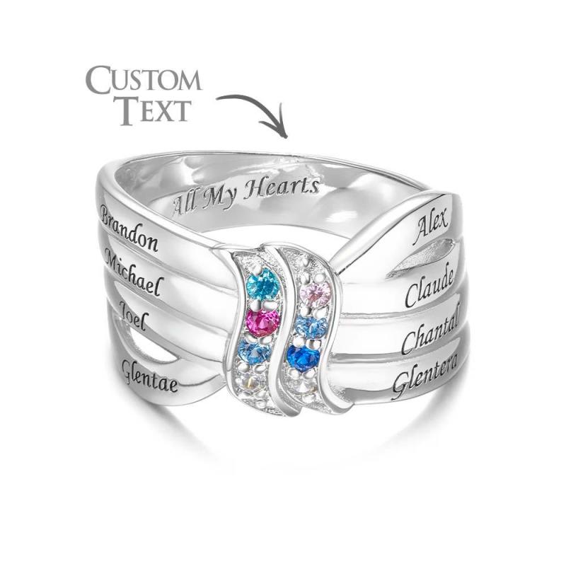 Anel De Pedra De Nascimento Com Nome E Texto Personalizado, Presente De Anel De Família Personalizado Para Ela