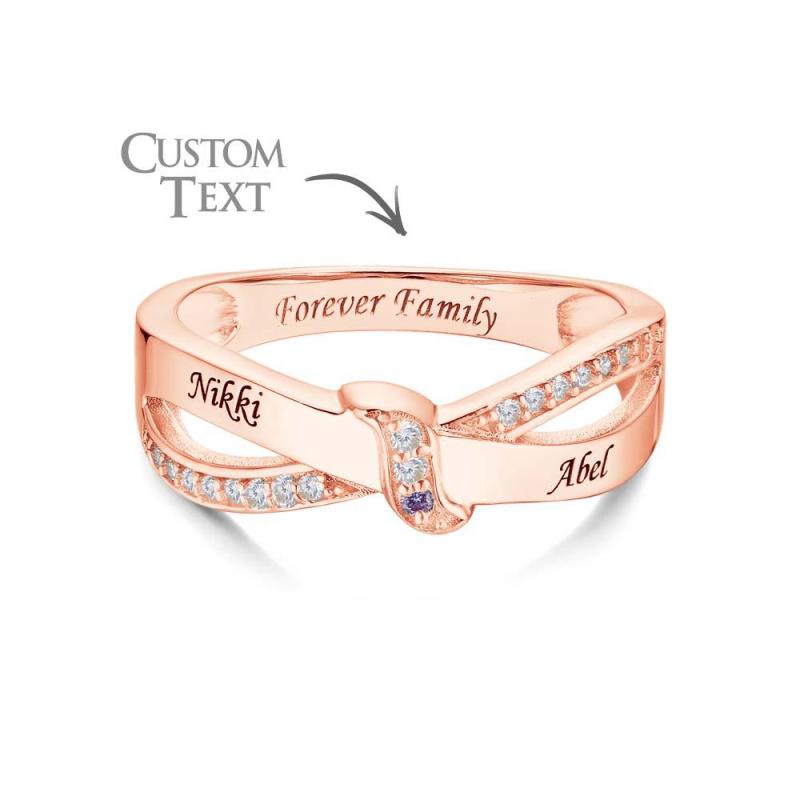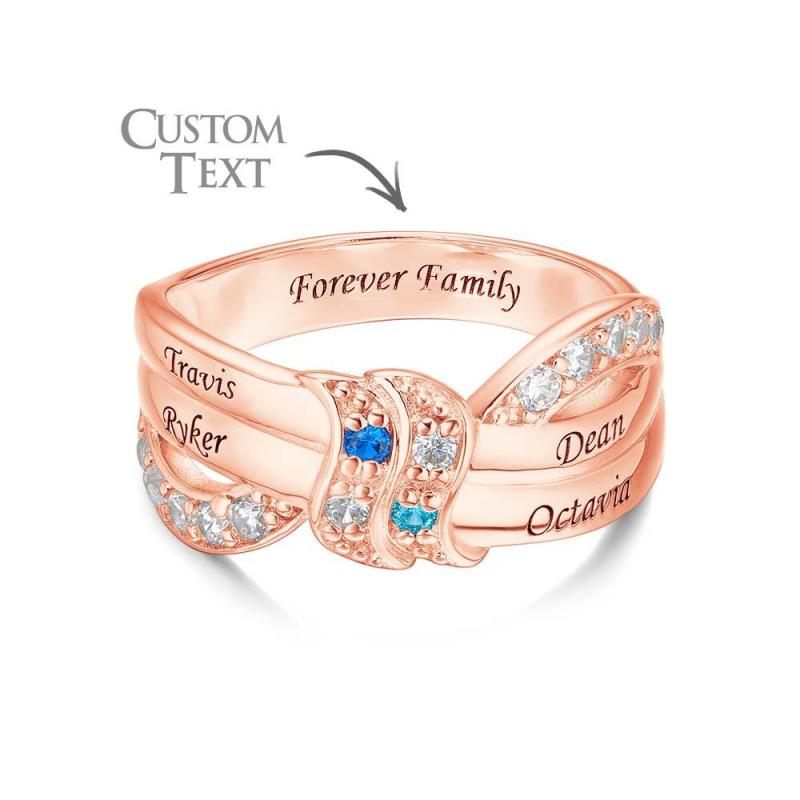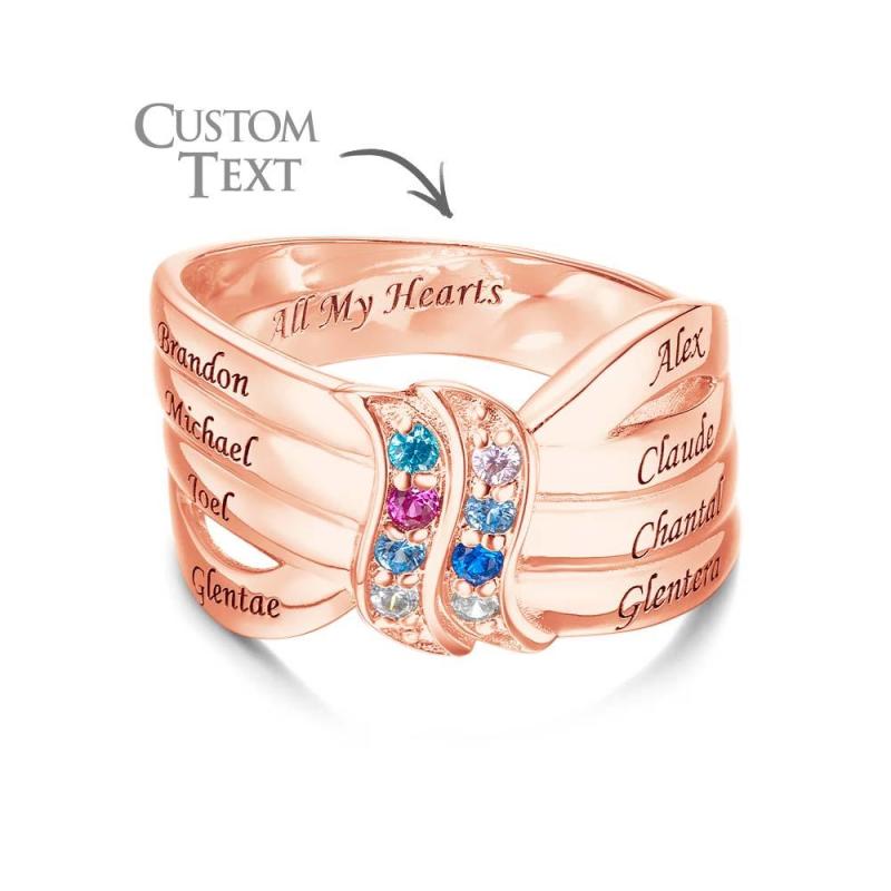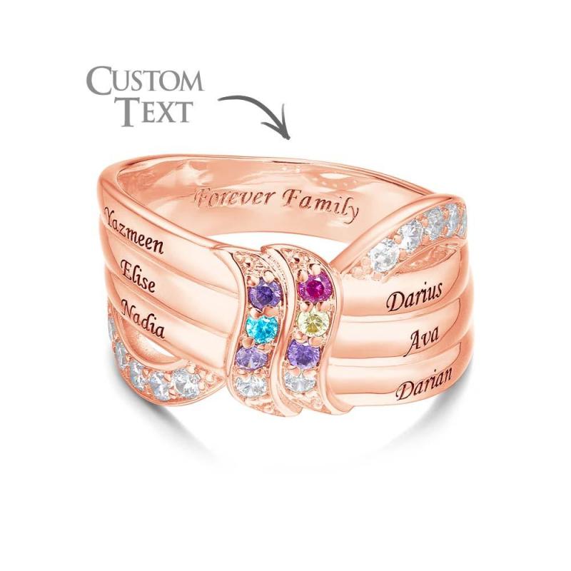 Anel De Pedra De Aniversário Com Nome Personalizado E Texto, Banhado A Ouro Rosa, Presente De Família Personalizado Para Ela