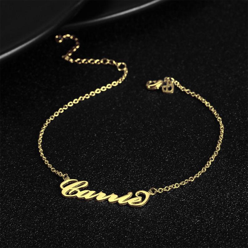 Tornozeleira com Nome Personalizado, Jóia Personalizada Banhado a Ouro 14K - Dourado
