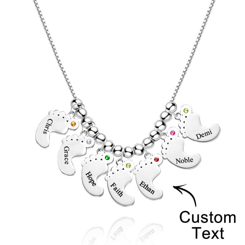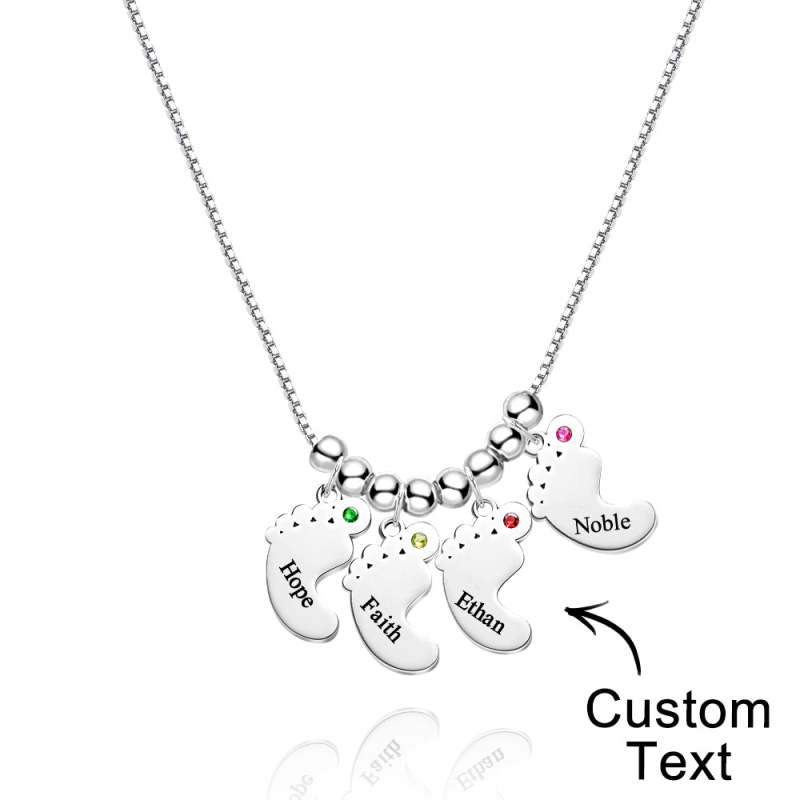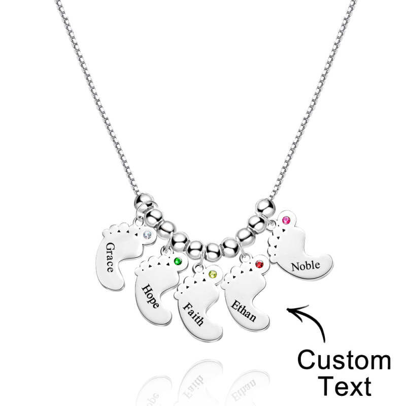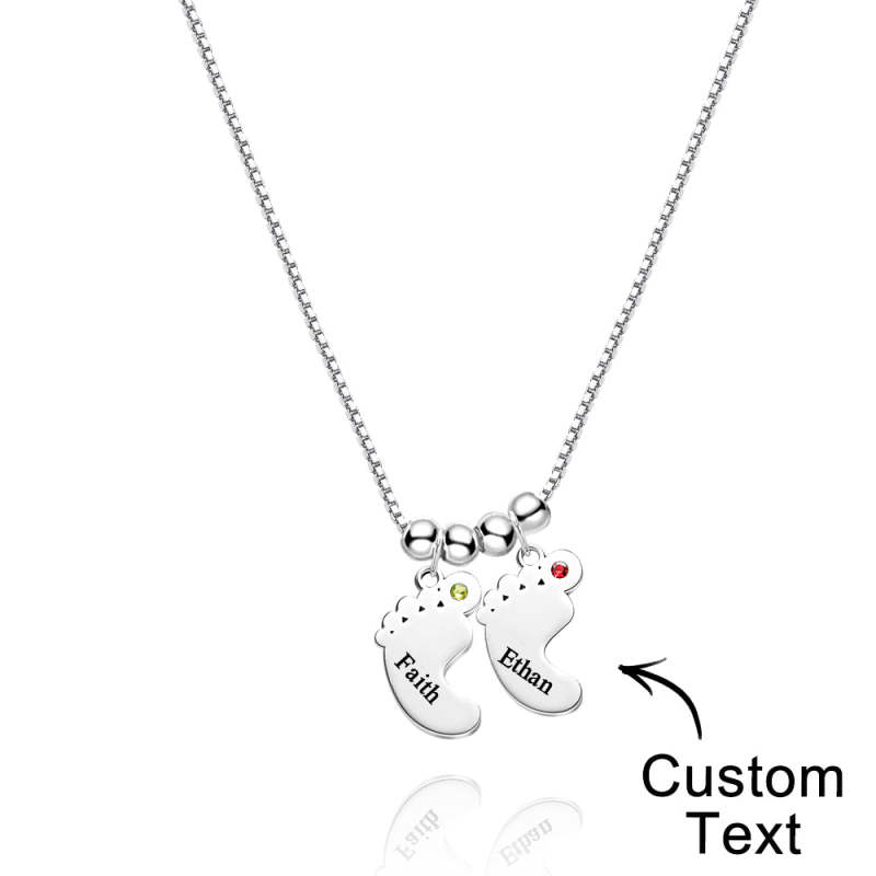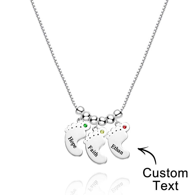 Colar Feito Sob Encomenda Do Encanto Dos Pés Do Bebê De Birthstone Do Nome Para O Natal