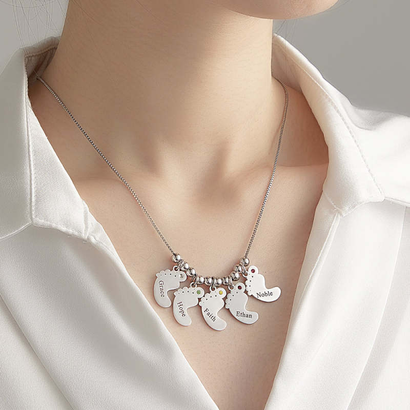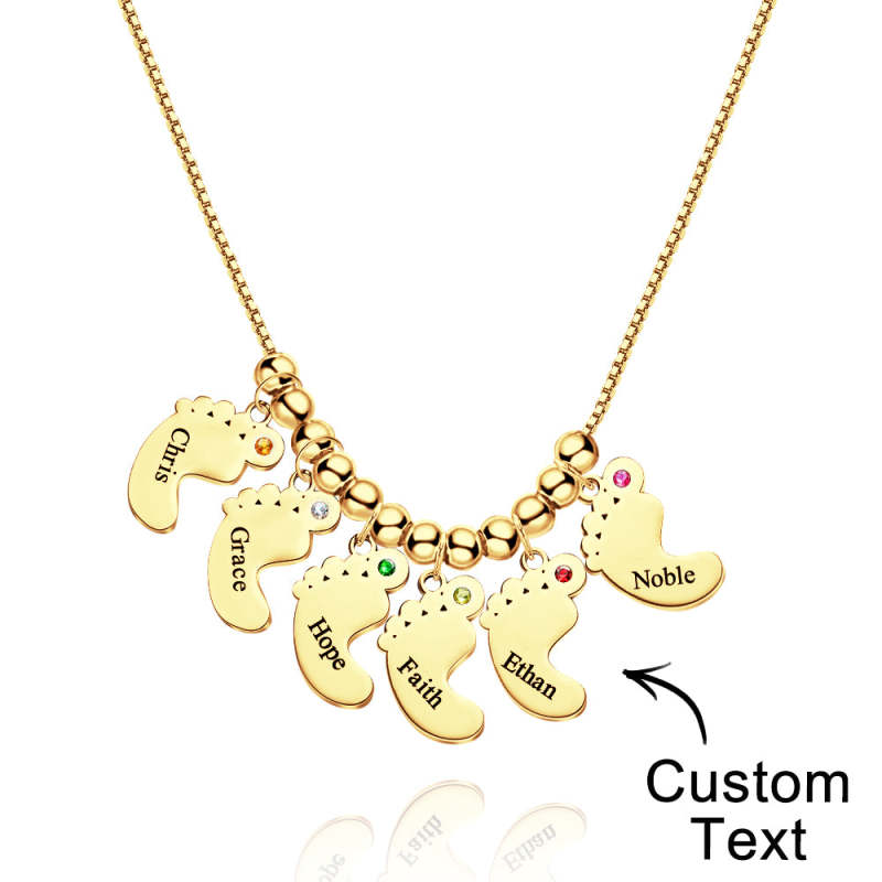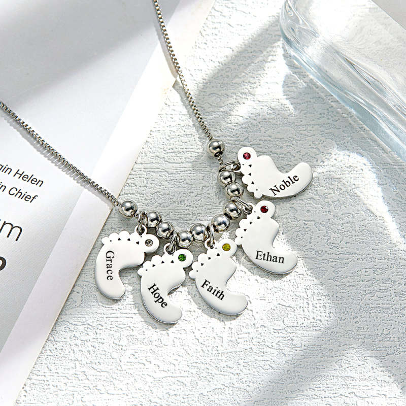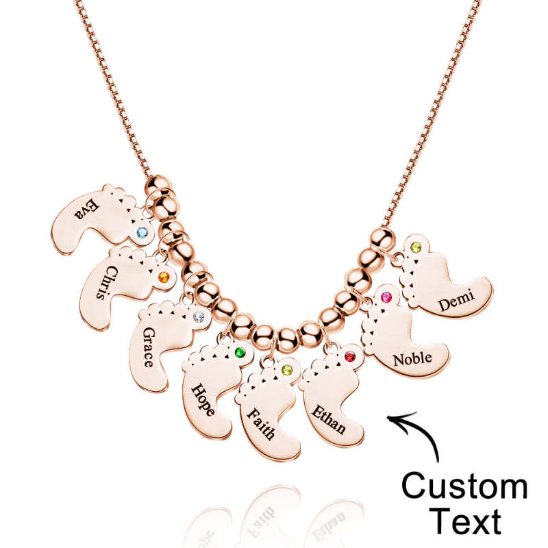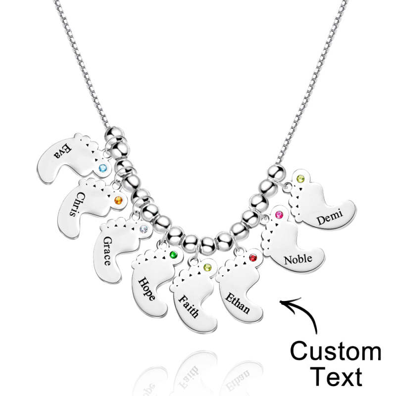 Colar Feito Sob Encomenda Do Encanto Dos Pés Do Bebê De Birthstone Do Nome Para O Natal