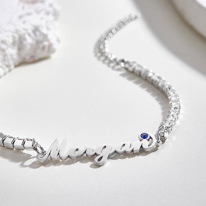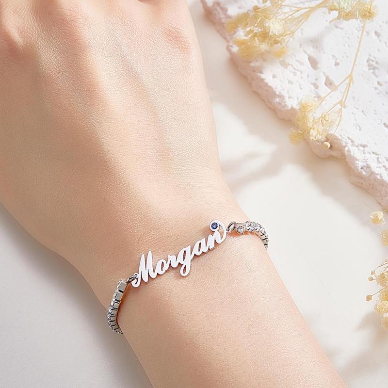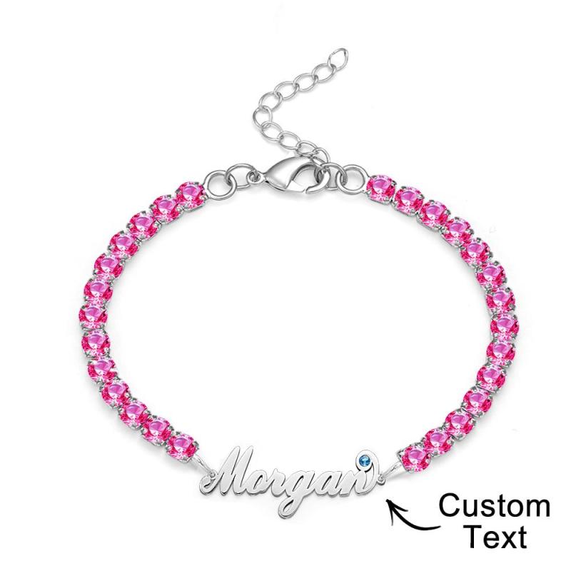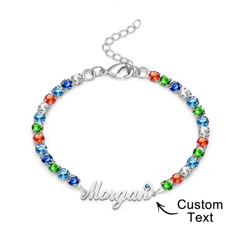 Pulseira De Tênis Com Pedra De Nascimento Com Nome Personalizado, Presente Na Moda Com Todos Os Diamantes Para Ela