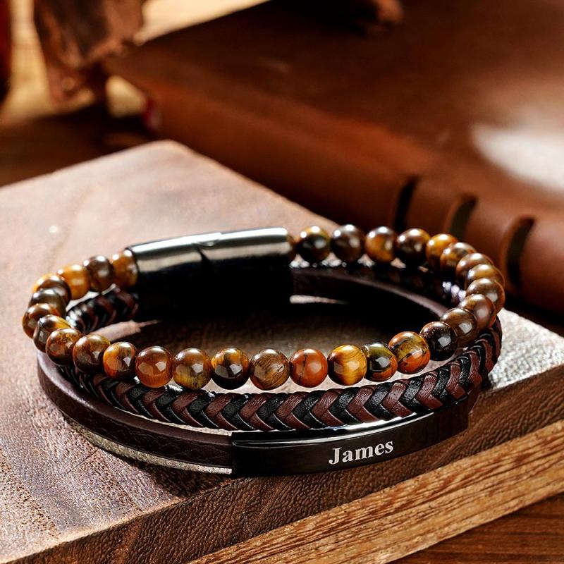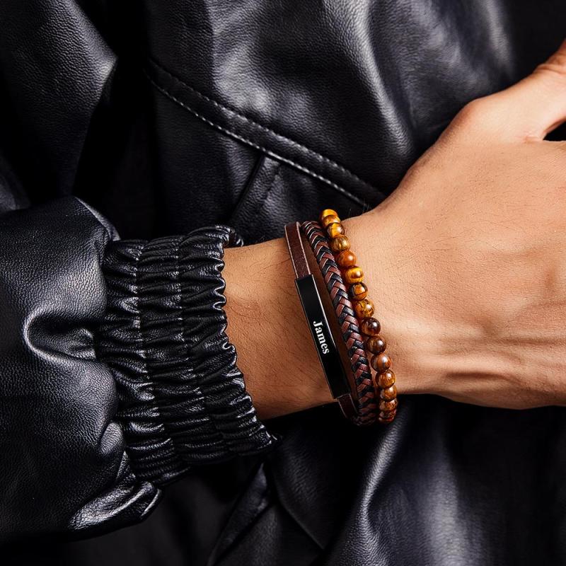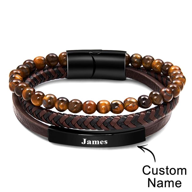 Pulseira Com Nome Personalizado Presente De Couro Tecido Pilha Vintage Para Homens