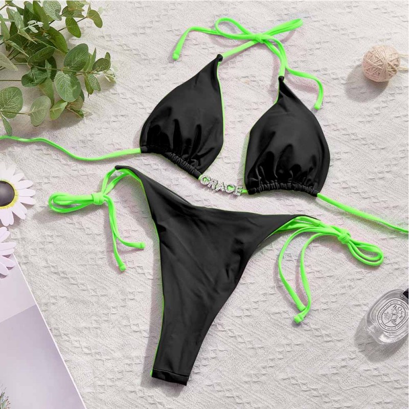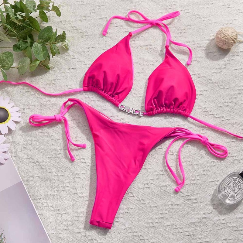 Conjuntos De Biquínis Coloridos Com Nome Personalizado Biquíni Com Letras De Cristal Diy Personalizadas