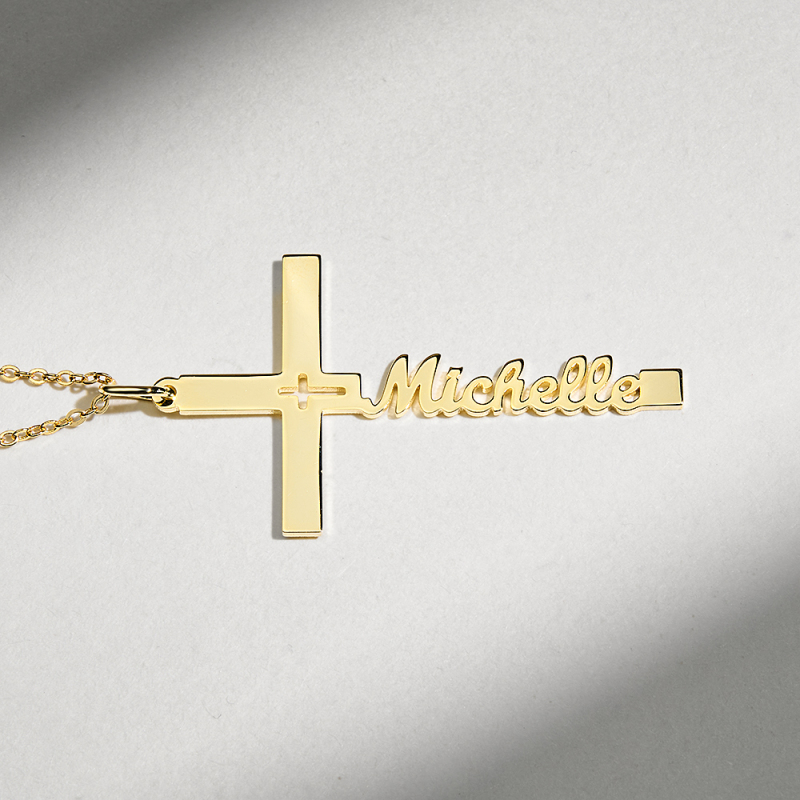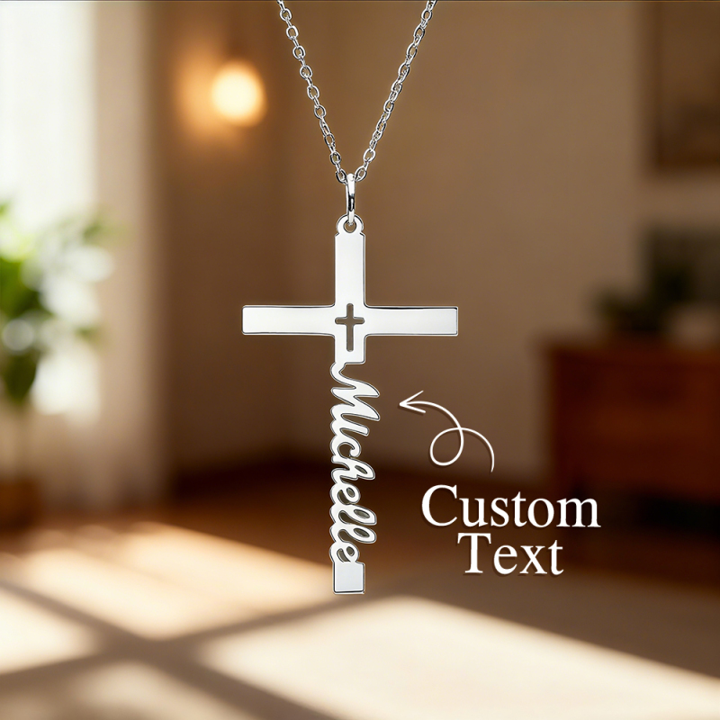 Adicione um toque de elegância ao seu visual do dia a dia com o nosso Colar com Cruz Personalizado com Nome. Cuidadosamente projetado com um estilo minimalista, esta peça personalizada é perfeita para uso diário ou como um presente significativo.