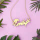 Além disso, os colares com nome oficial são versáteis o suficiente para uso diário. Coloque-os sozinhos ou coloque-os em camadas para um visual mais ousado.
