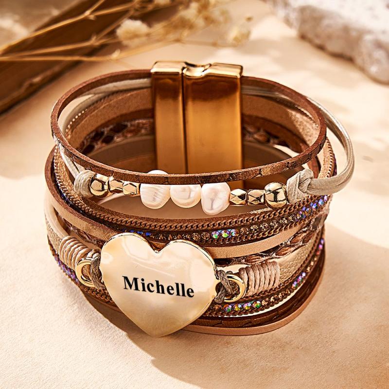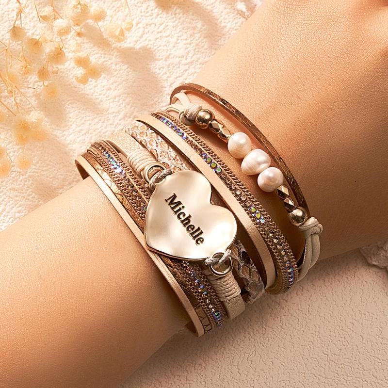 Pulseira De Couro Feminina Com Nome Personalizado, Pulseira De Pérola Barroca, Linda