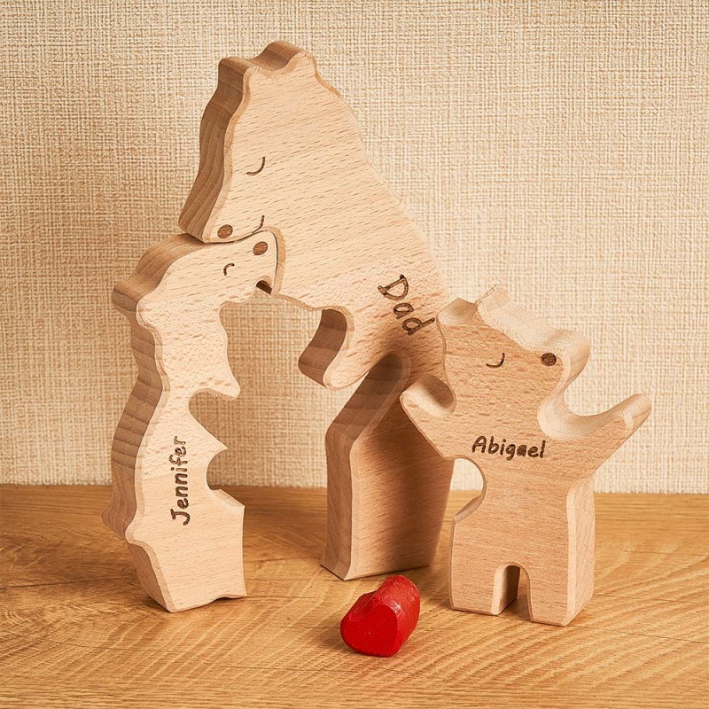 Nomes Personalizados De Madeira Para Pais Solteiros Ursos Bloco Familiar Quebra-cabeça Presentes De Decoração Para Casa