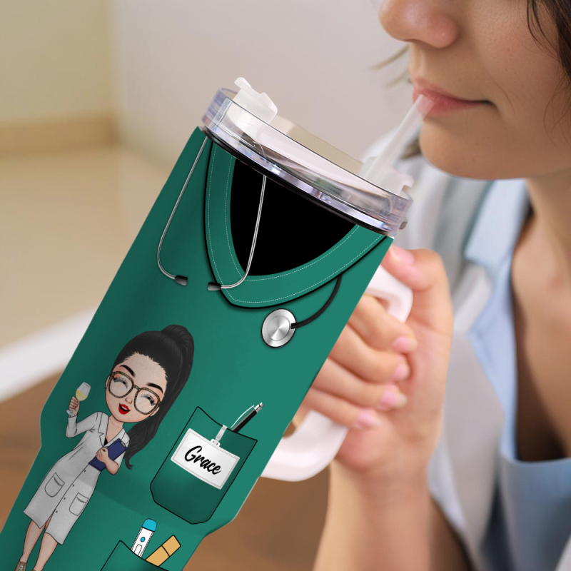 Esta é uma caneca que pode ser personalizada com vários elementos. Você pode personalizar seu nome, a cor de fundo da caneca e a mensagem de texto nela. É perfeito para seu médico ou amigo enfermeiro. Com esta elegante caneca de viagem, seu amigo pode controlar a sede, seja viajando ou em seu deslocamento diário. E essa caneca vem com canudo, o que torna seu uso ainda mais prático! Também seria um ótimo presente para aniversários, formaturas e outros eventos especiais. Bem-vindo à página inicial da Soufeel para ver mais presentes médicos personalizados!