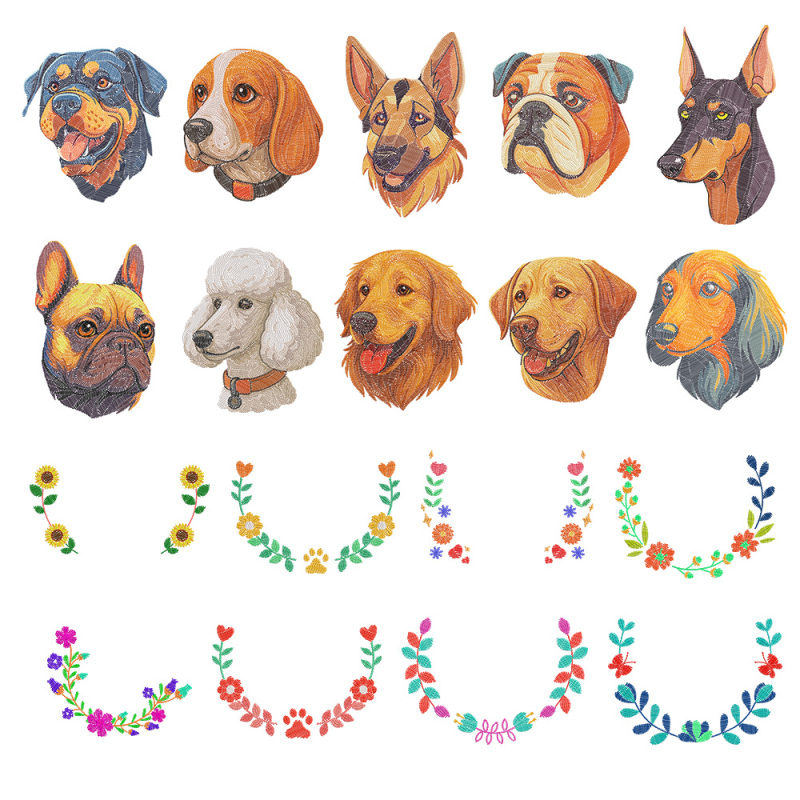 ✔ 8 bordas decorativas – Bordas florais, geométricas, estampas de patas e mais bordados