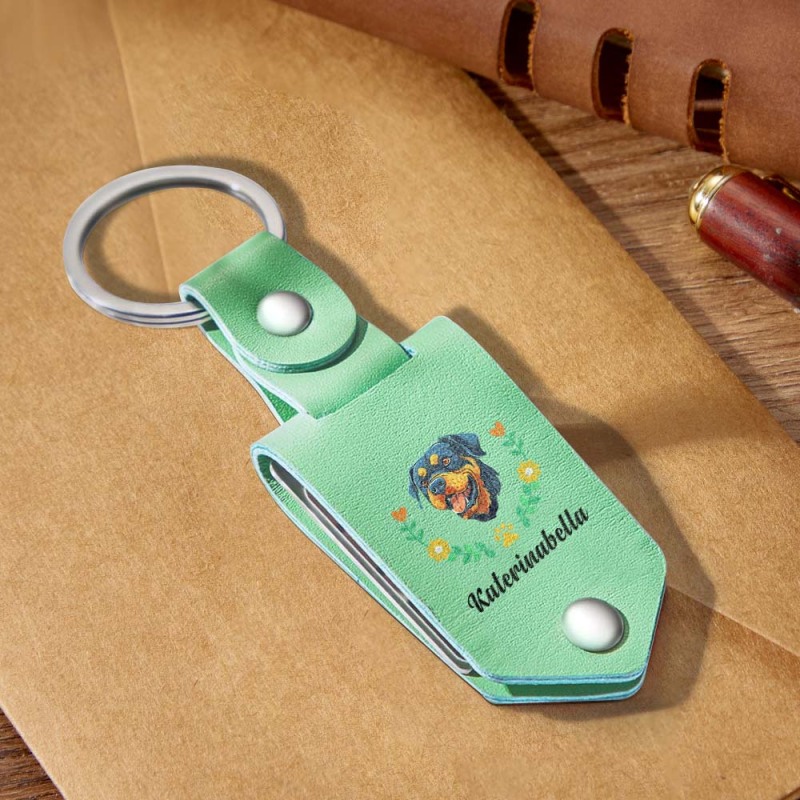 Leve a memória do seu amigo peludo em 4 cores elegantes com este chaveiro de couro feito à mão, com um detalhado retrato de cachorro bordado em estilo. Medindo 8×3×1cm, esta lembrança vem em vermelho clássico, preto atemporal, verde natural e marrom quente para combinar com seu estilo.