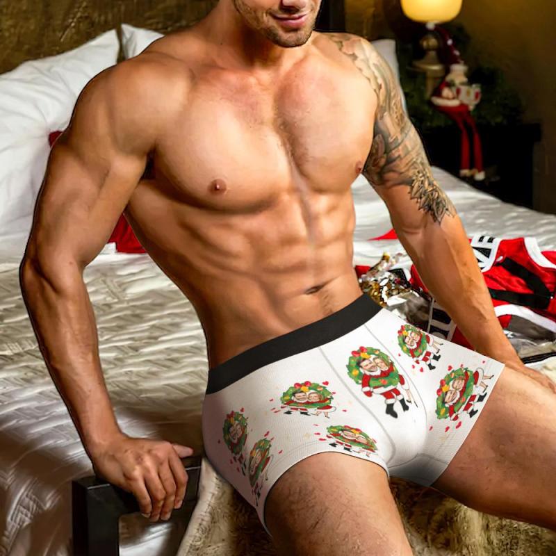 Cueca Boxer Com Foto Personalizada Duplo Papai Noel Casal Presentes De Natal Vista Ar