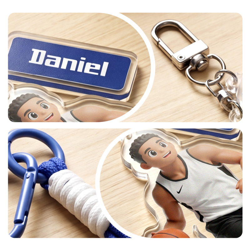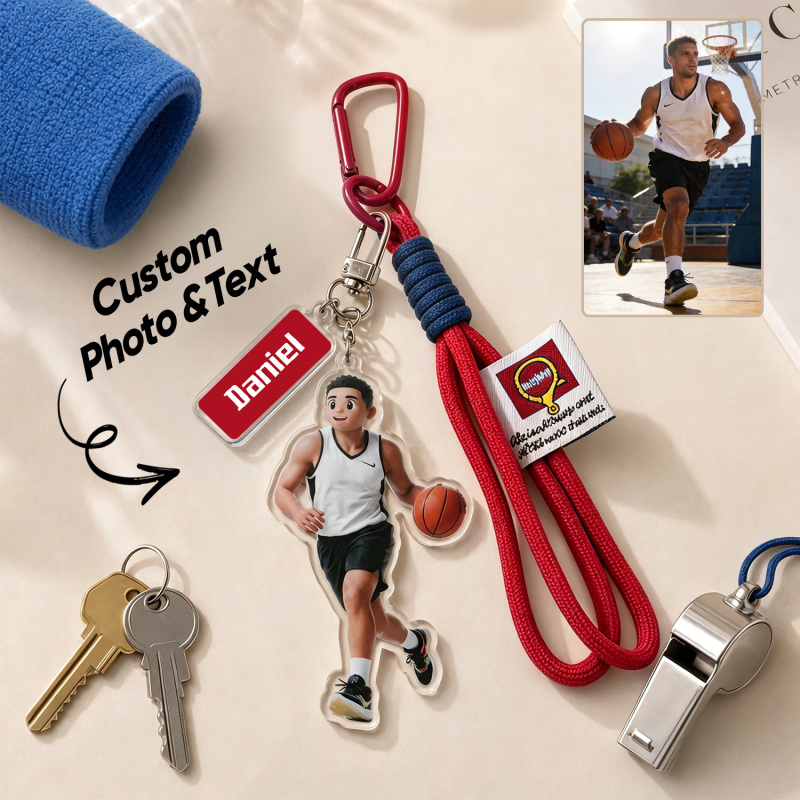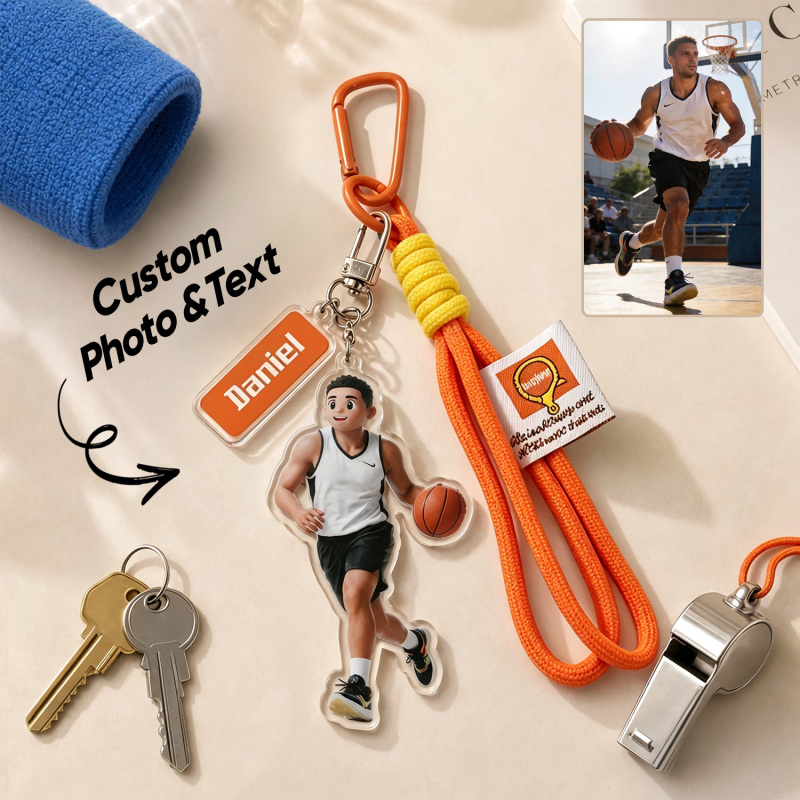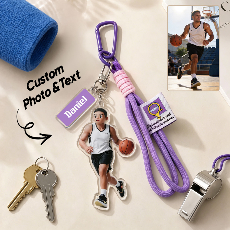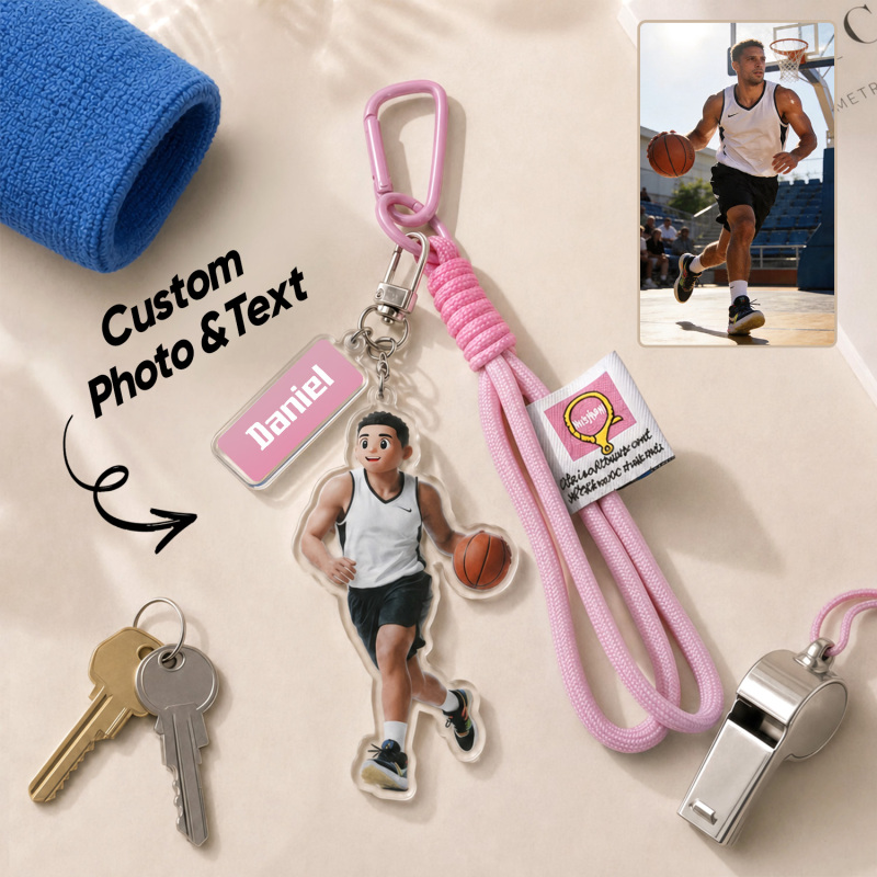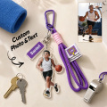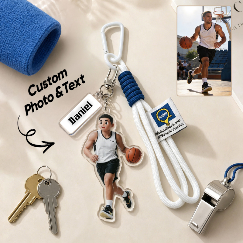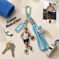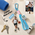 Transforme seus momentos esportivos favoritos em uma lembrança personalizada com este chaveiro personalizado com retrato em estilo cartoon. Apresentando uma ilustração em estilo caricatural baseada em sua foto, além de uma gravação personalizada com o nome, é o acessório perfeito para atletas, treinadores e fãs de esportes.