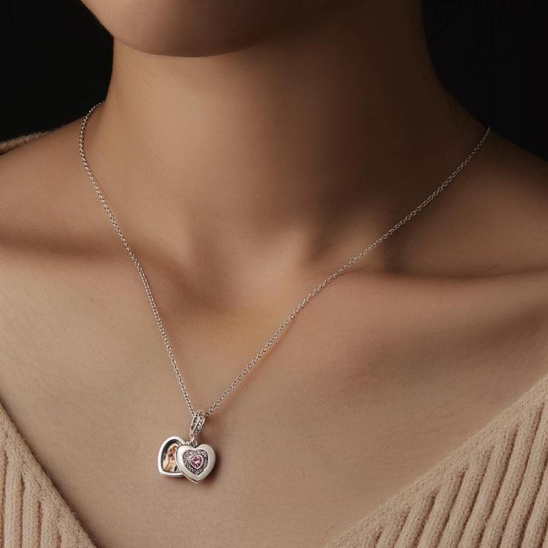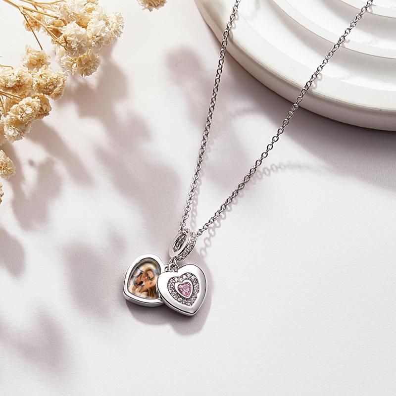 Amuleto De Foto Personalizado Com Colar Amuleto De Foto Personalizado Individual Com Presente De Foto De Pedra De Aniversário De Coração