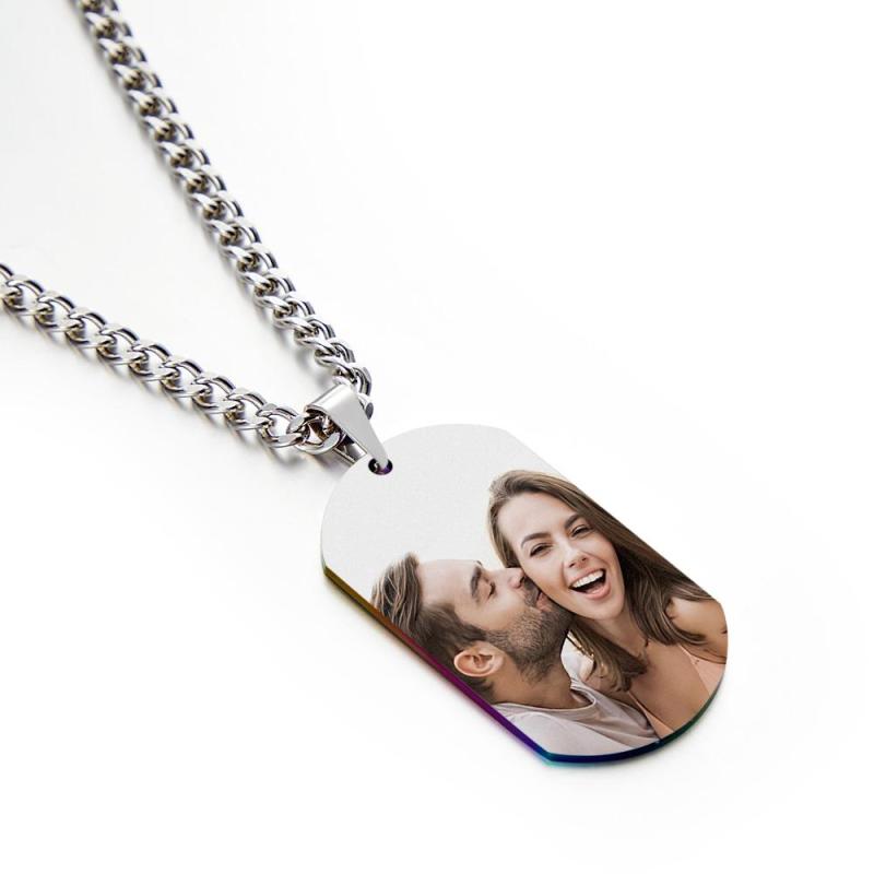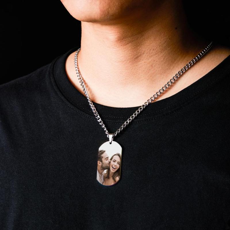 Grave qualquer imagem ou palavra que você quiser com este lindo e atraente colar de etiqueta de cachorro gravado. Este lindo colar com foto de etiqueta de cachorro também é um ótimo presente! É elegante e algo que você pode usar com qualquer roupa e em qualquer época do ano!