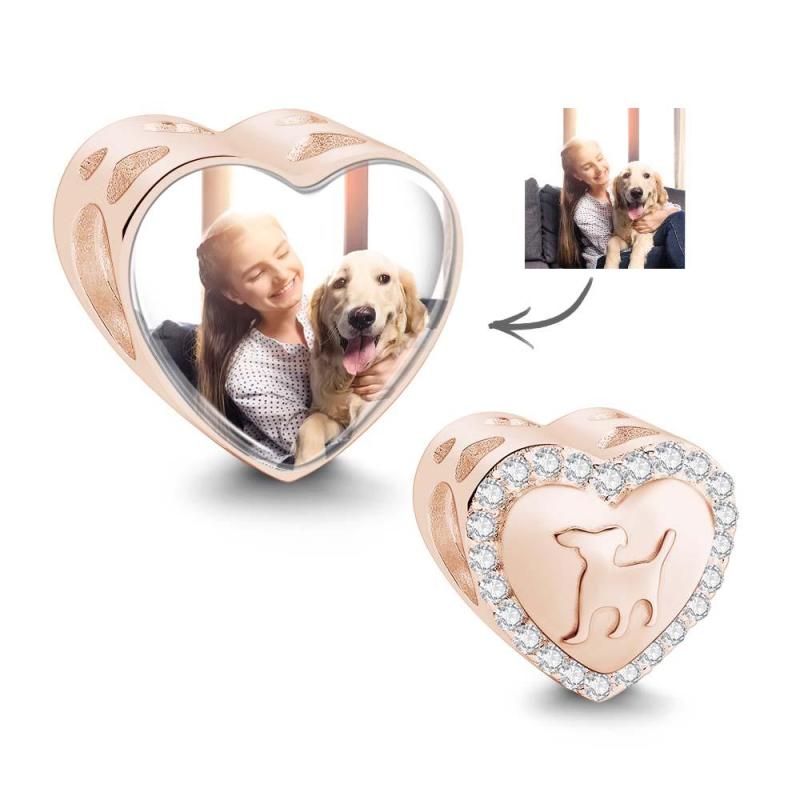 Foto Personalizada Coração Charme Zircon Decoração Pet Dog Design Presentes Para Amantes De Animais De Estimação