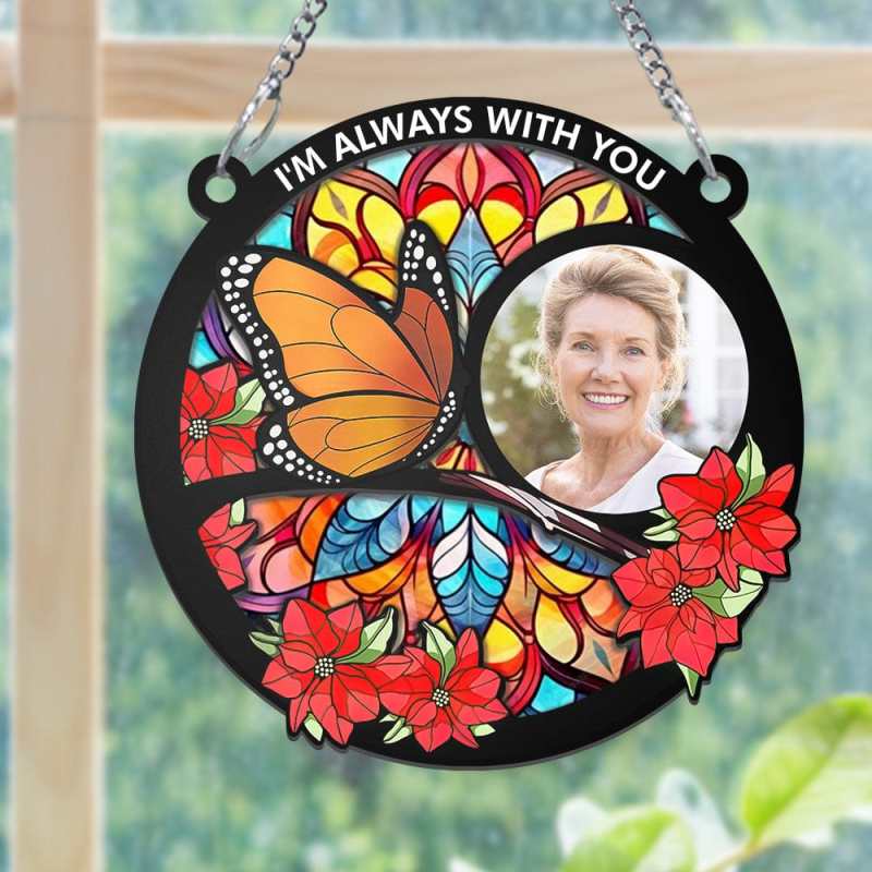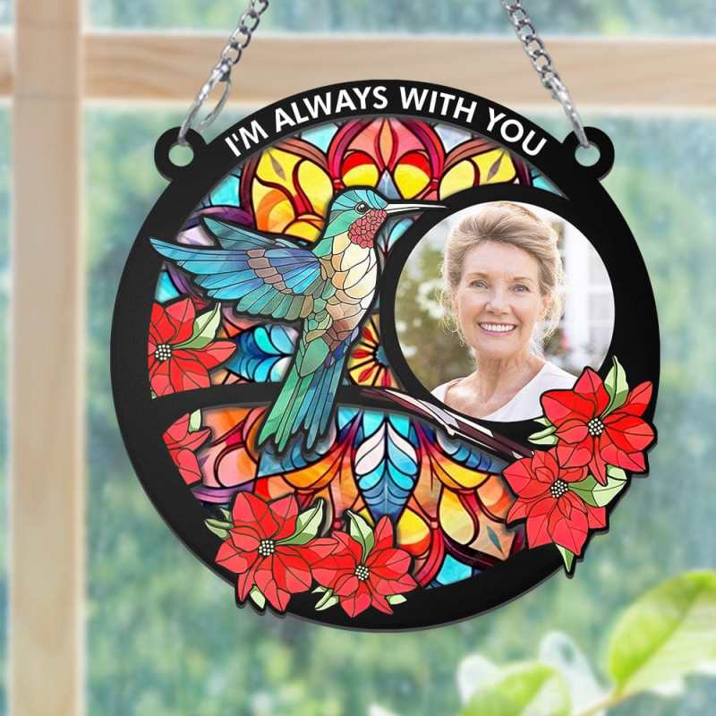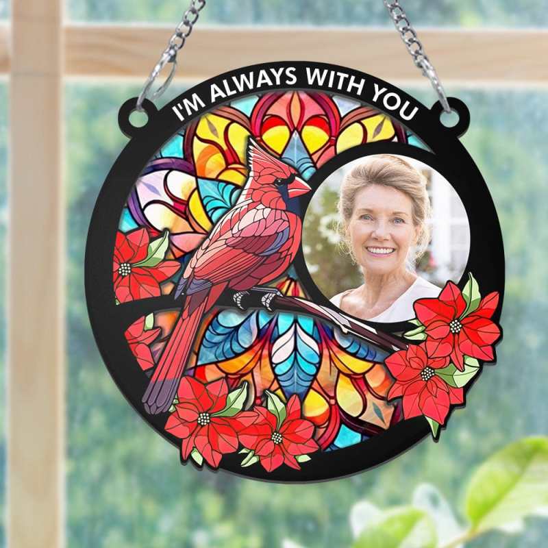 Honre a memória de um ente querido com o enfeite de proteção solar personalizado 'Foto Personalizada Estou Sempre Com Você Memorial'. Esta sincera homenagem é mais do que apenas uma decoração; é um lembrete reconfortante de que sua presença será sentida para sempre. Presente perfeito para o Dia dos Pais, Dia de Ação de Graças, Natal, aniversário ou aniversários.