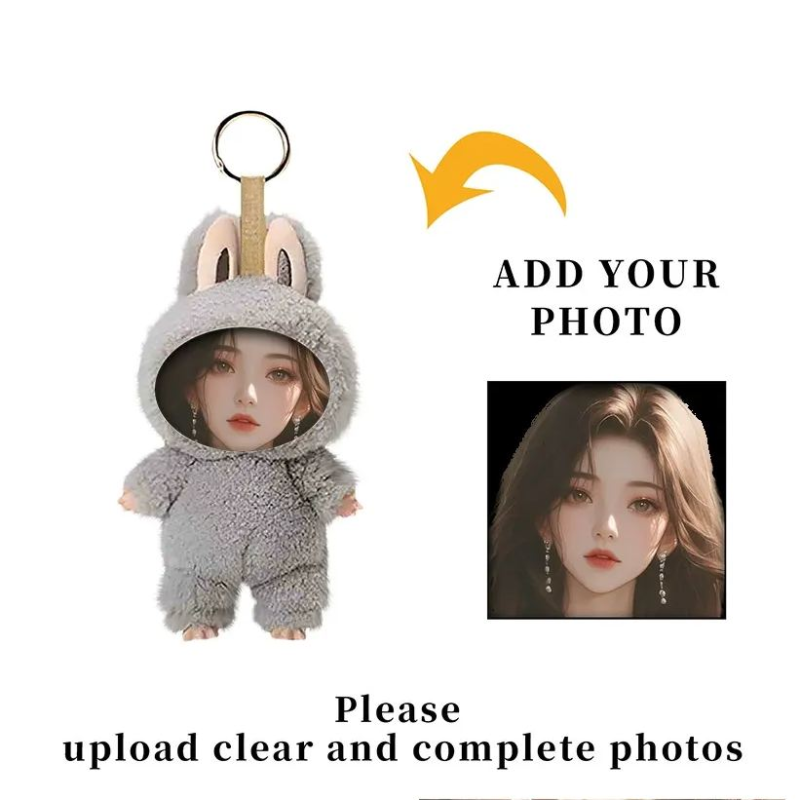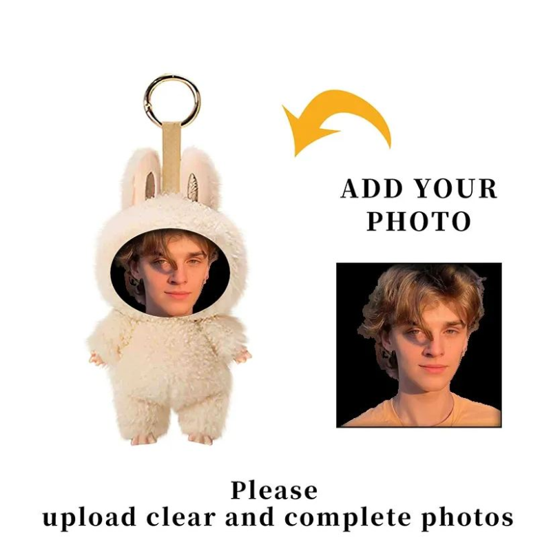 Transforme momentos preciosos ou memórias engraçadas em um tesouro portátil com nossa boneca chaveiro com foto personalizada - uma mistura divertida de personalização DIY e charme de pelúcia, projetada para se destacar como um pingente exclusivo. Feito com um rosto grande e fofo (design de rosto grande), este boneco de pelúcia macio permite que você imprima sua foto favorita - seja uma foto boba de um amigo, uma linda foto de grupo ou um meme engraçado - tornando-o um acessório único e cheio de personalidade. pequena peça de decoração. É também o melhor presente de brincadeira para amigos - surpreenda-os com uma foto personalizada hilária que os fará rir toda vez que a virem, ou presenteie uma versão sincera com uma memória preciosa para mostrar que você se importa. Durável, leve e cheio de charme, nosso pingente de boneca de pelúcia DIY é perfeito para quem adora itens exclusivos e personalizados. Esteja você se presenteando ou procurando um presente divertido e memorável, este boneco de chaveiro com foto personalizado verifica todas as caixas - divertido, funcional e cheio de personalidade.