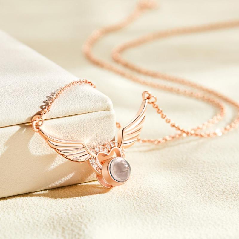 Colar Pingente De Asas Em Forma De Coração Colar De Projeção De Fotos Personalizado Presente Criativo