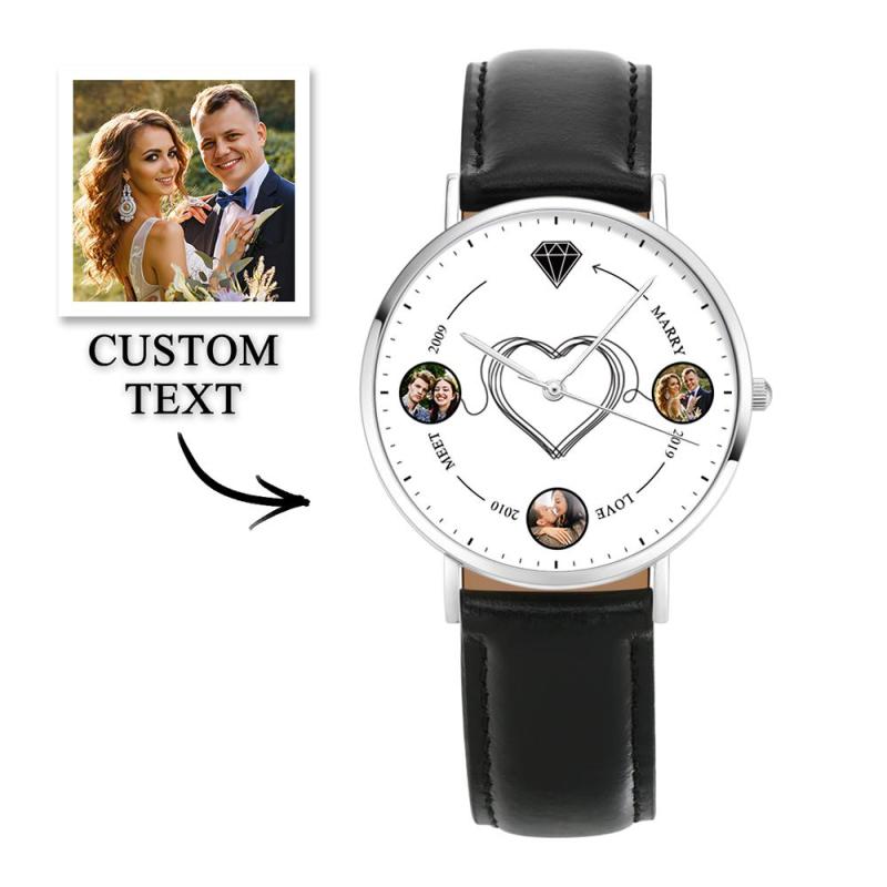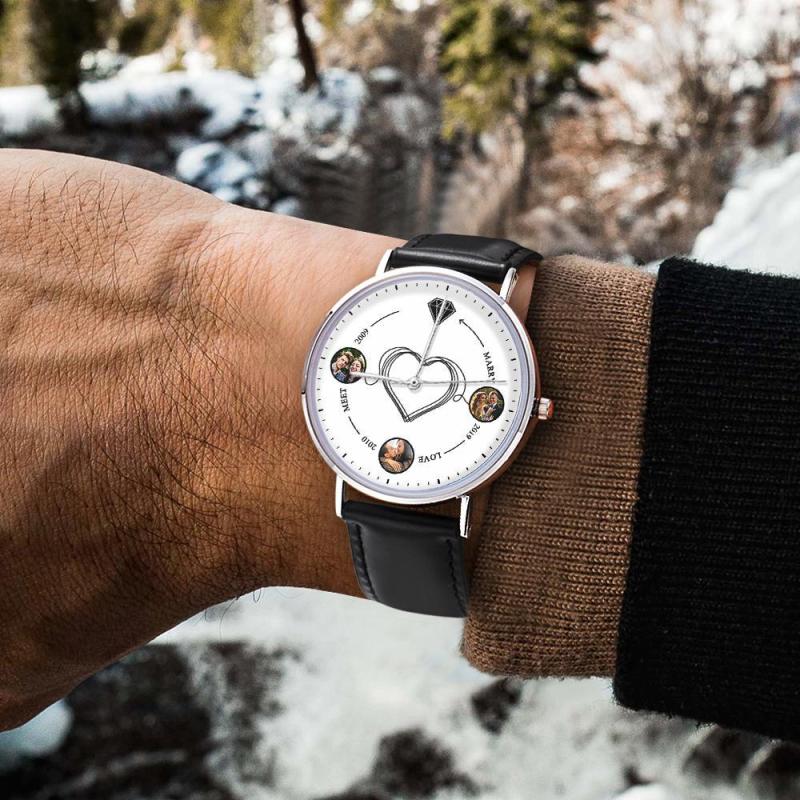 Ano após ano, o tempo passa indefinidamente. Sempre há alguns dias especiais para serem lembrados. Nós nos conhecemos, nos apaixonamos e nos casamos. Carregue seu amor com um de nossos relógios memoriais. Personalize o presente original para sua pessoa amada. Você pode não conseguir voltar no tempo, mas este relógio nos faz pensar que podemos.