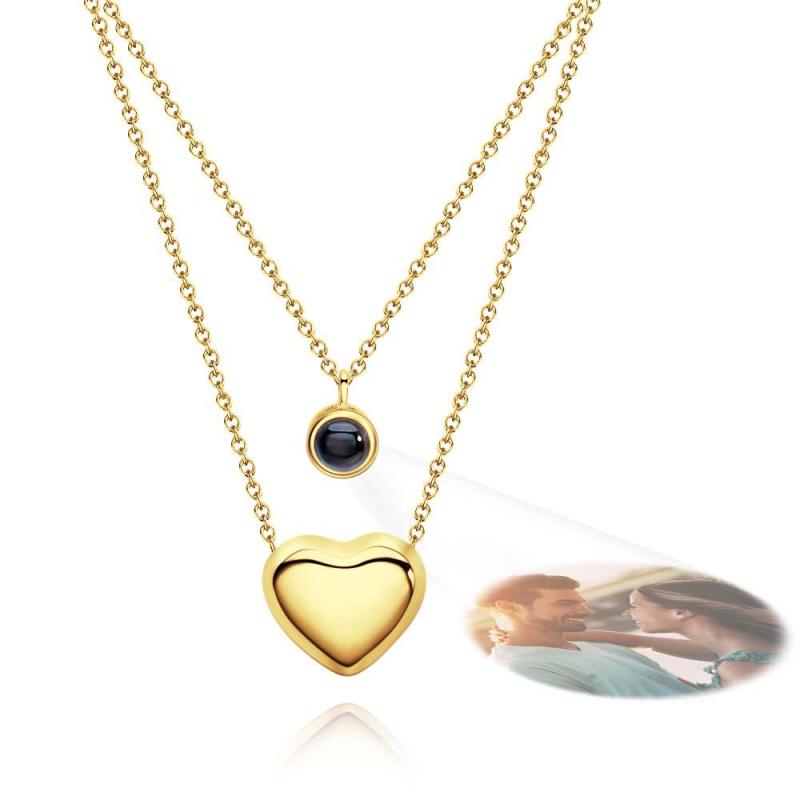 Colar De Projeção Personalizado Com Dupla Camada De Coração Para Presente De Casal
