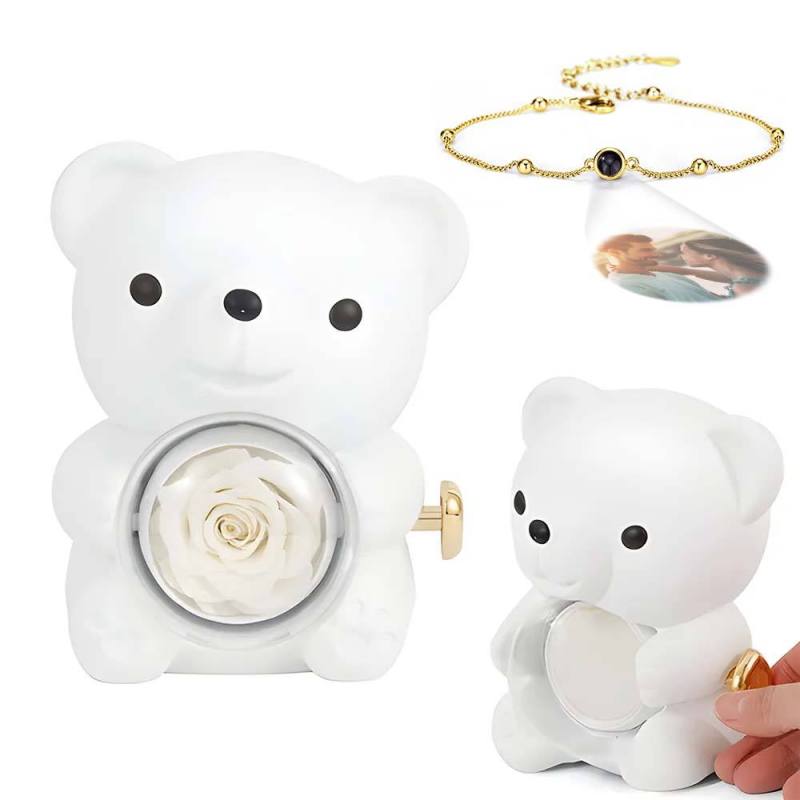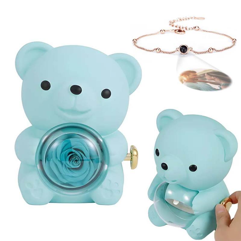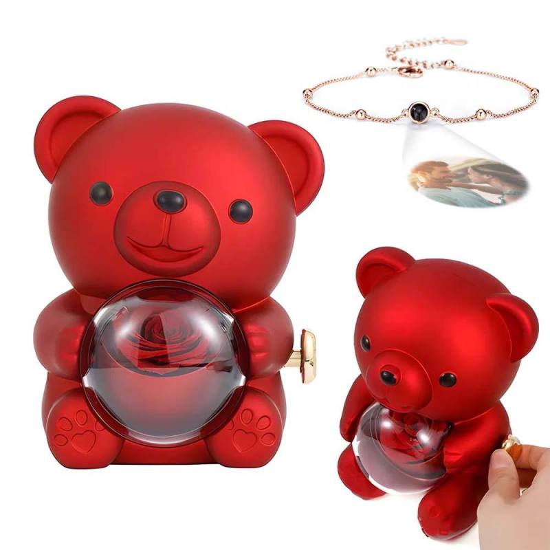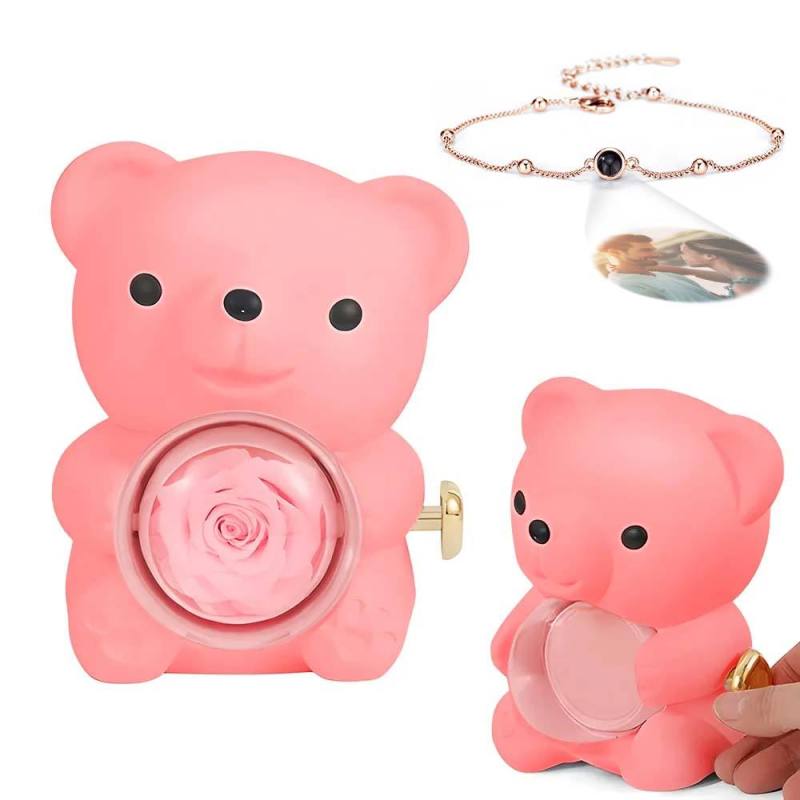 Pulseira De Imagem De Projeção Personalizada Com Caixa De Presente De Urso De Rosa Real Caixa De Presente Em Forma De Rosa Caixa De Presente De Jóias
