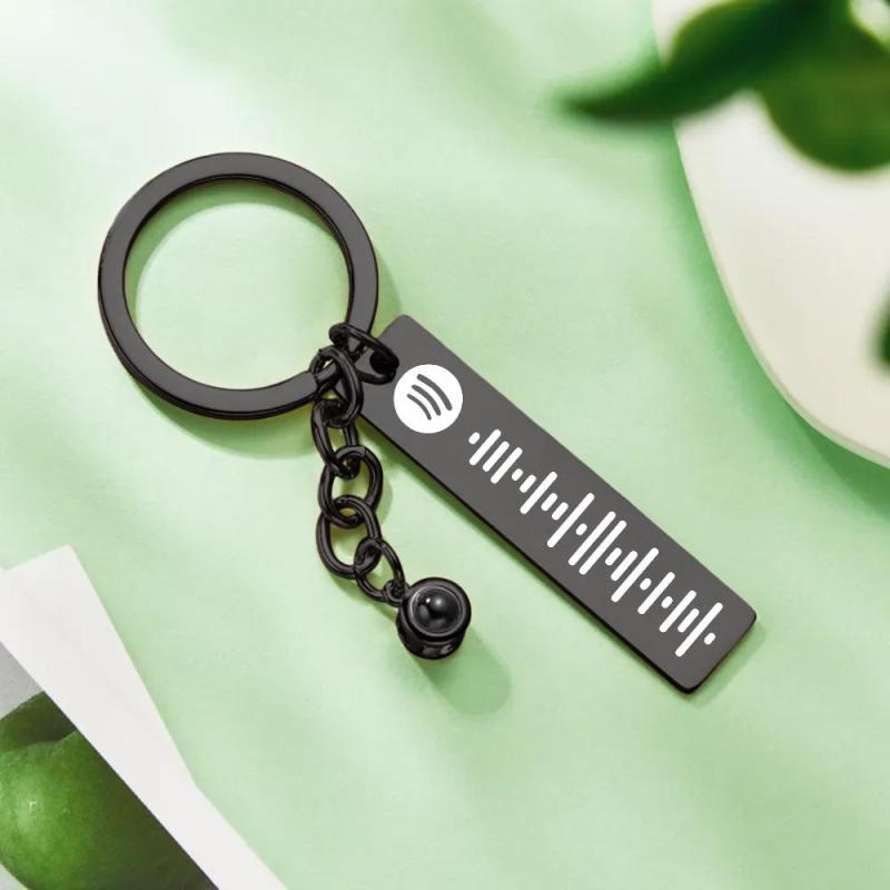 Este chaveiro exclusivo é o presente perfeito para ele. Chaveiro de código Spotify personalizado, selecione qualquer título de música, nome de artista, você pode personalizar a foto nesta pequena bola de projeção de chaveiro, você pode gerar um código Spotify exclusivo. Observe que a própria placa do chaveiro não emite música. Você precisa escanear o código no aplicativo Spotify e, depois de escanear o código no Spotify, sua música começará a ser reproduzida imediatamente.