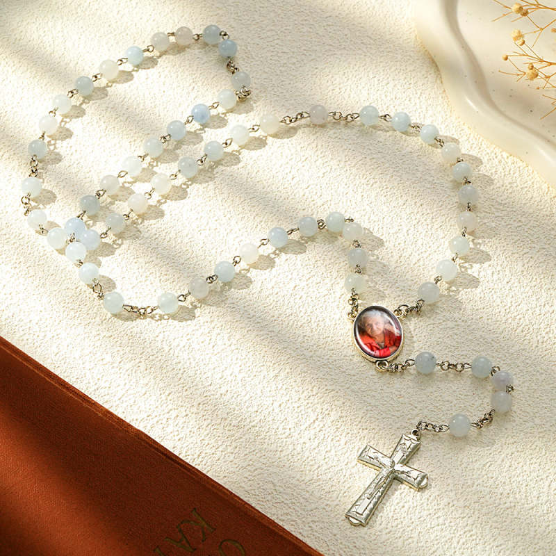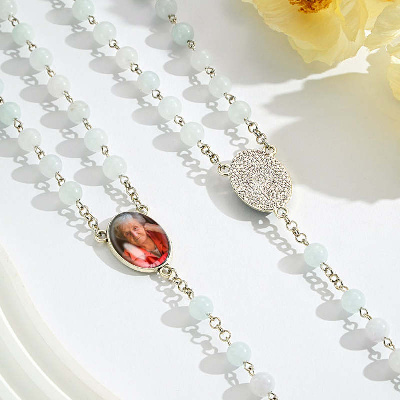 Colar De Contas De Rosário Personalizado, Colar De Contas De Calcedônia Água-marinha Personalizado Com Foto