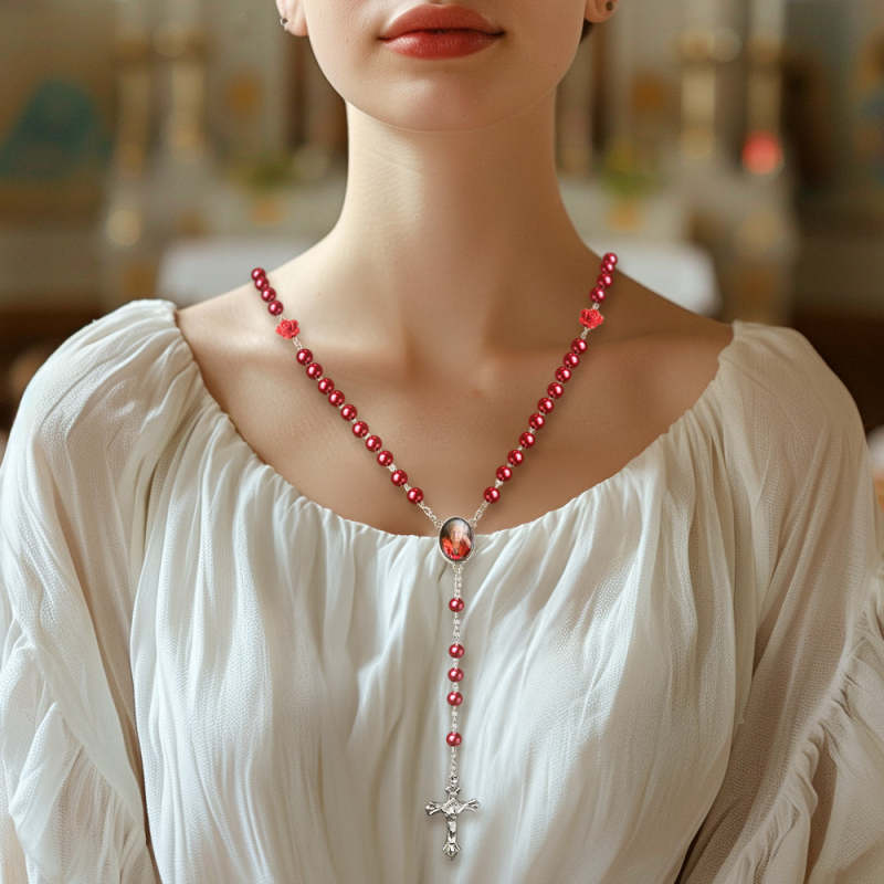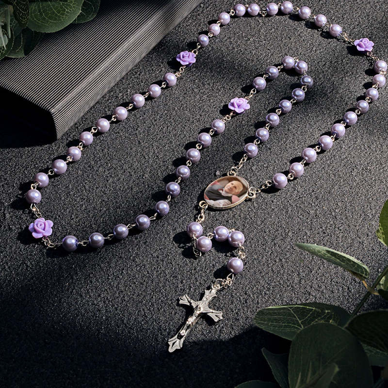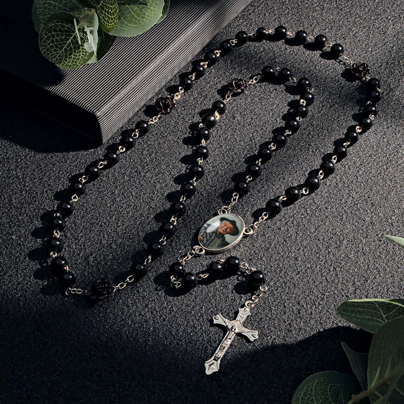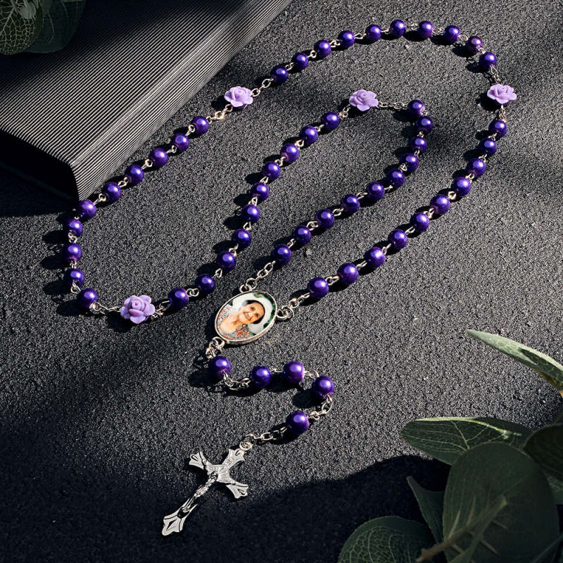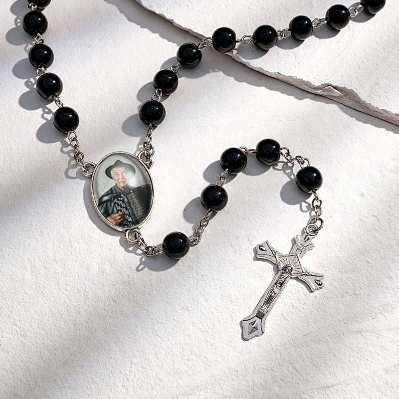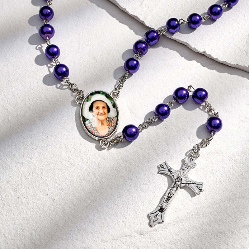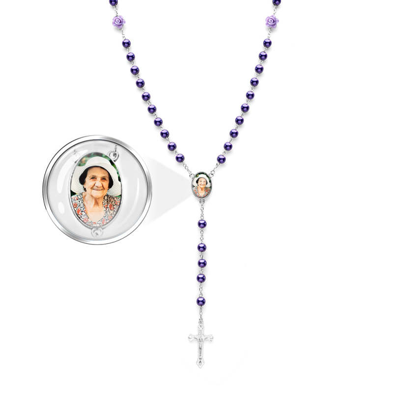 Colar De Contas De Rosário Personalizado, Colar De Pérolas De Imitação De Vidro Personalizado Com Foto