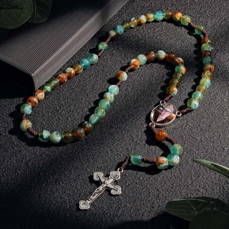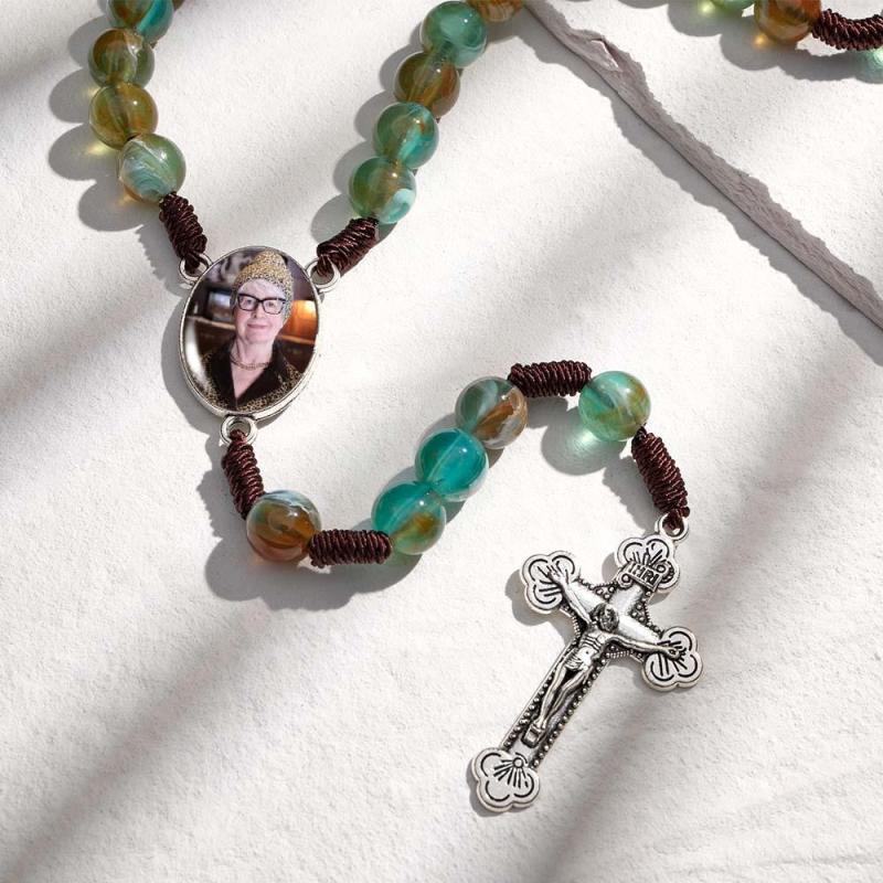Colar De Contas De Rosário Personalizado, Colar De Imitação De Ágata Redondo Personalizado Com Foto