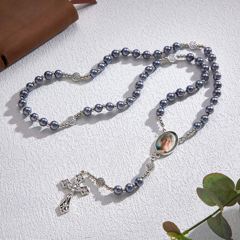 Colar De Cruz Com Contas De Rosário Personalizado, Imitação De Vidro Retrô Personalizado, Colar Oco De Pérola Com Foto