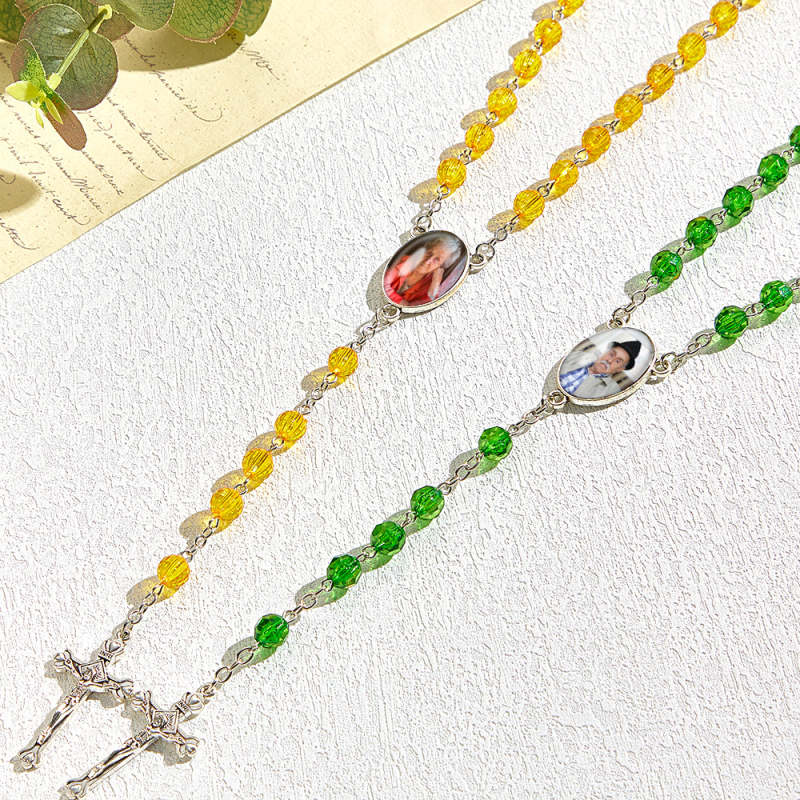 Colar De Cruz Com Contas De Rosário Personalizado, Estilo Retrô Personalizado, Feito À Mão, Com Foto