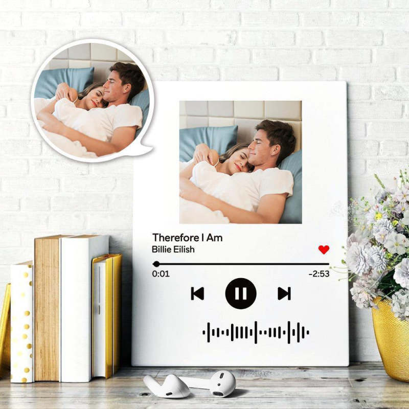 Esta tela única é o melhor presente perfeito para ele / ela no Natal. Personalize o Canvas com o código do Música, escolha o título da música, o nome do artista e as fotos favoritas que desejar, tudo pode ser impresso no Canvas e você pode gerar um código Música exclusivo. Observe que o Canvas em si não emite música. Você tem que escanear o código no aplicativo Música, depois de escanear o código no Música, sua música começará a tocar imediatamente.