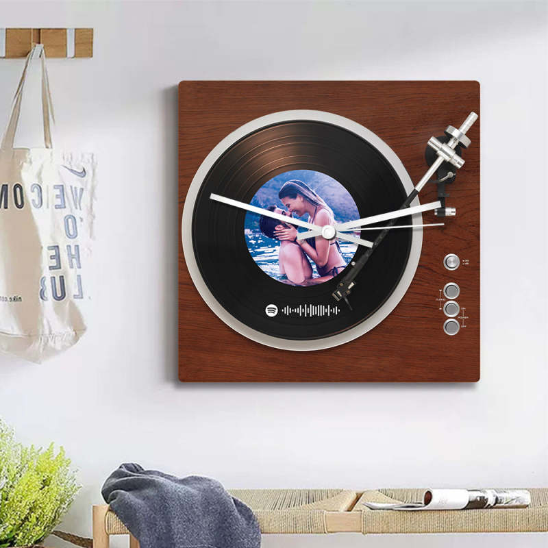 Relógio Quadrado Personalizado Com Foto E Código Spotify, Relógio Personalizado Com Gravação De Vinil, Decoração Exclusiva Para Casa, Presentes