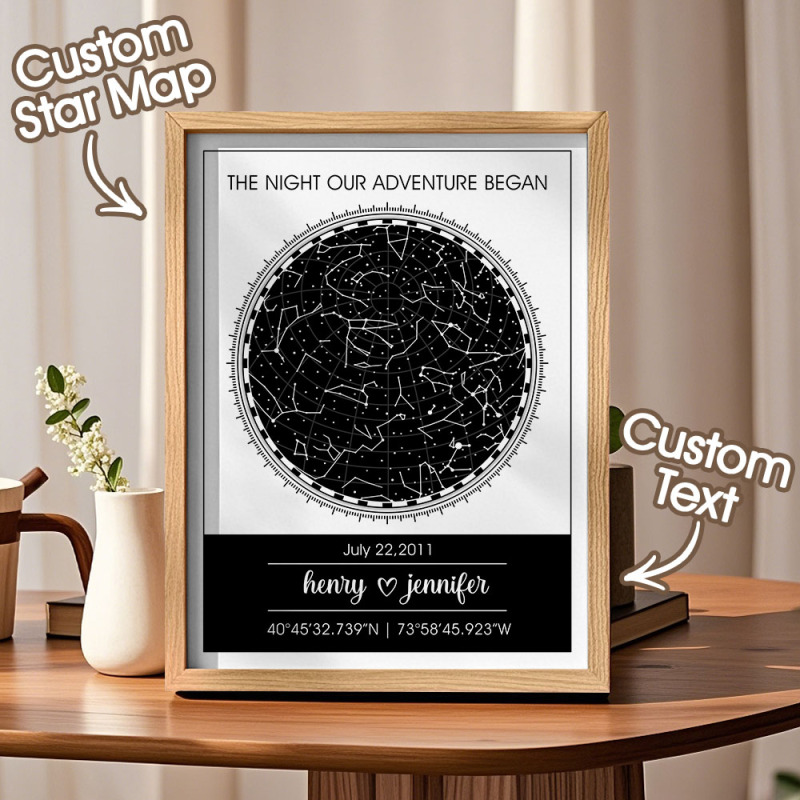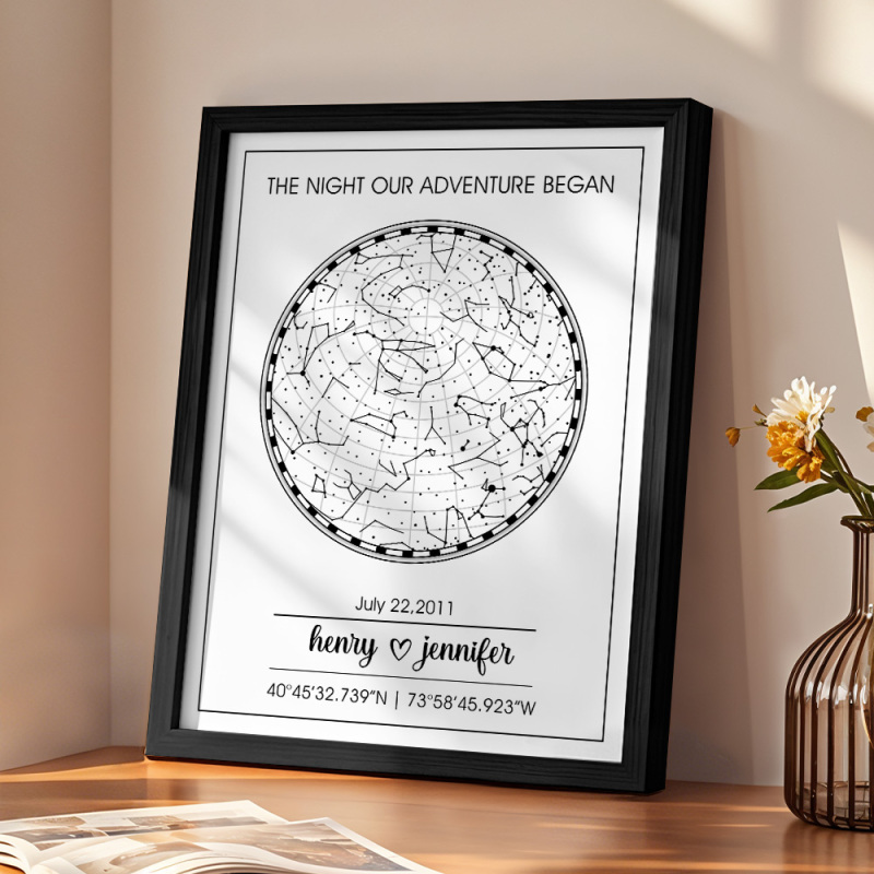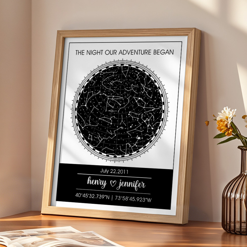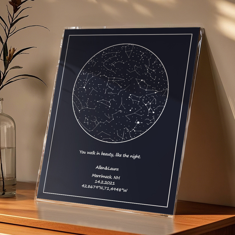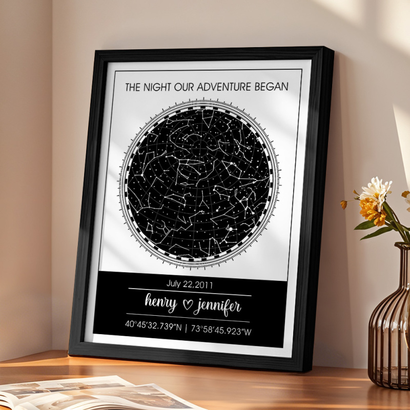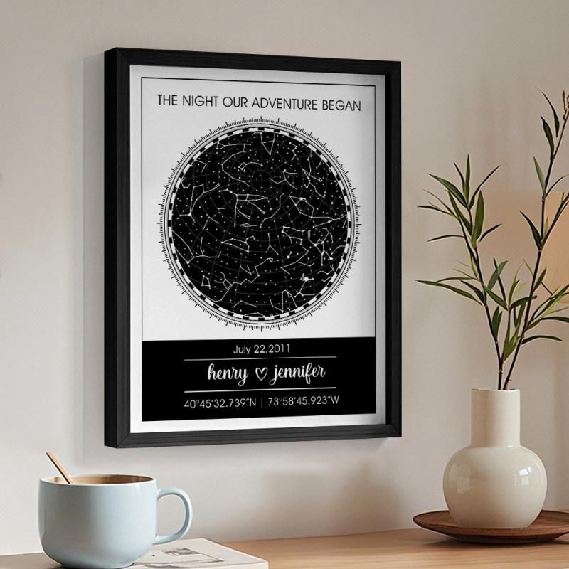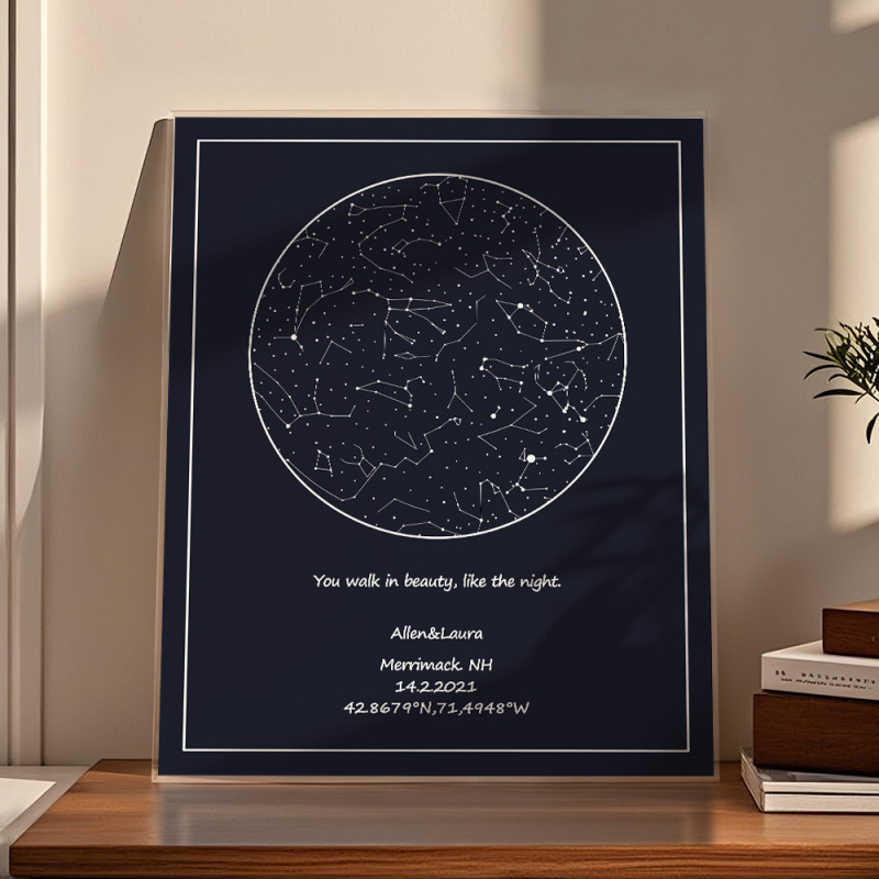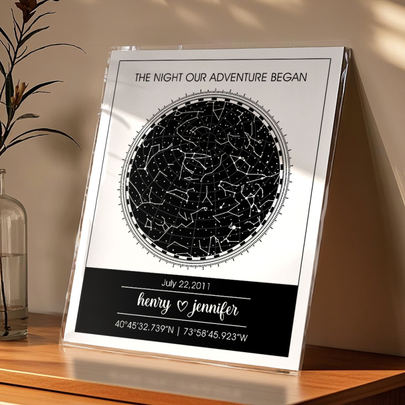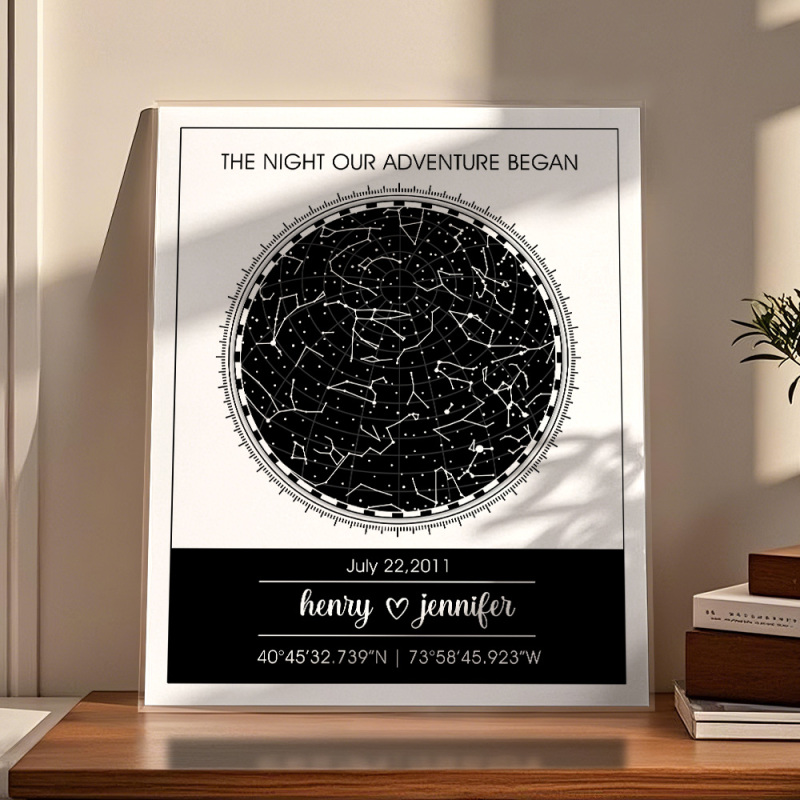 Congele momentos preciosos como a data do seu casamento ou a noite em que vocês se conheceram com este mapa estelar personalizado. É uma lembrança personalizada para casais, tornando-a perfeita para qualquer ocasião.