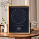 Impresso em papel de belas artes, cada mapa estelar é uma exibição luxuosa do momento escolhido, tornando-o particularmente especial para aniversários e noivados.