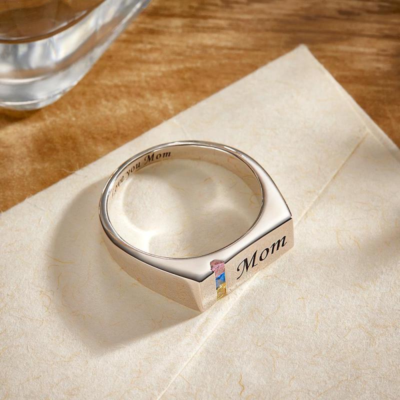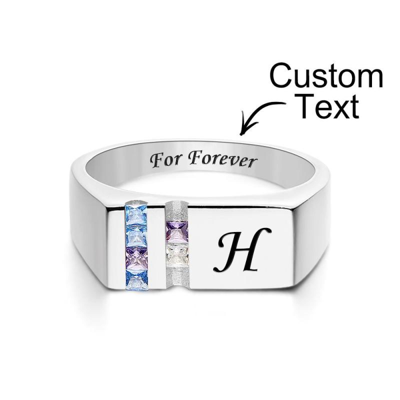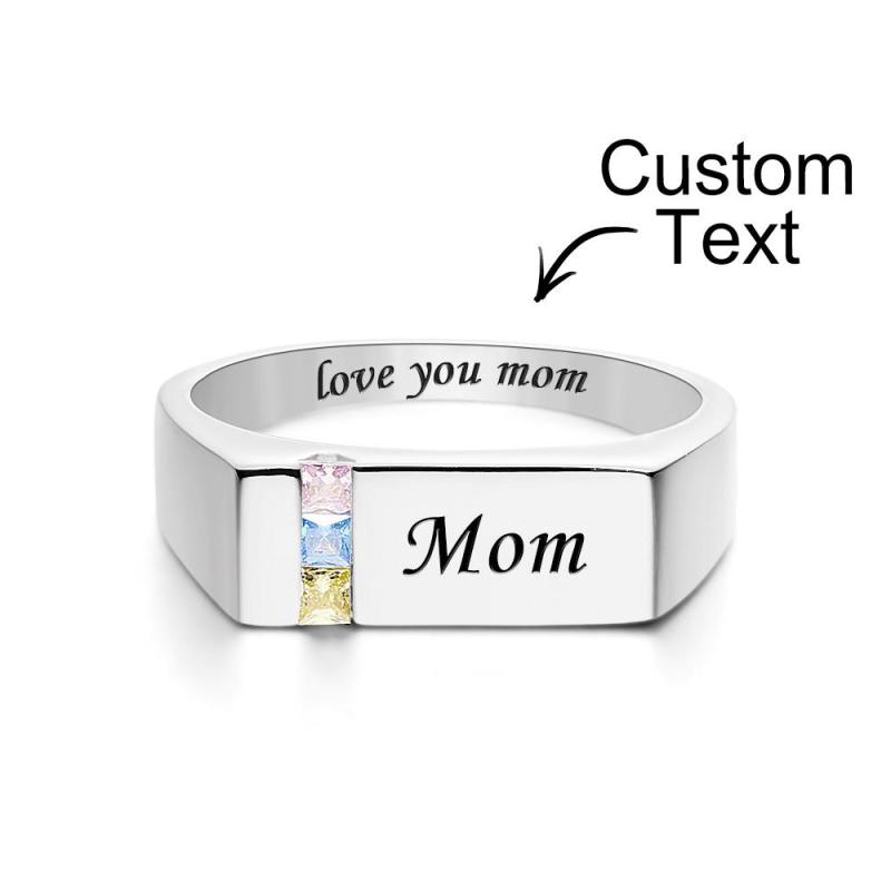 Presente Personalizado Do Anel Da Família Do Anel De Birthstone Do Texto Feito Sob Encomenda Para Ela