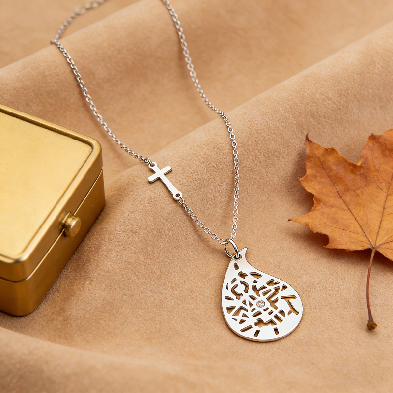 Eternize momentos especiais com o nosso Colar Mapa Personalizado. Este pingente romântico traça o contorno de um mapa personalizado dentro de um coração, transformando seus momentos favoritos em arte para usar no pulso. Escolha entre diversos estilos de corrente - lisa, em cruz ou com pingente em projeção - para combinar com o estilo dela e adicione um toque de brilho com pedras preciosas opcionais para um toque ainda mais romântico. Perfeito como presente de aniversário ou uma surpresa carinhosa para ela, este colar é uma lembrança atemporal que ela guardará com carinho.