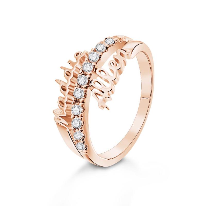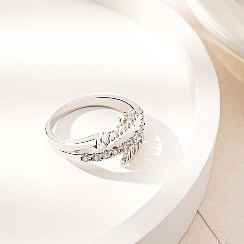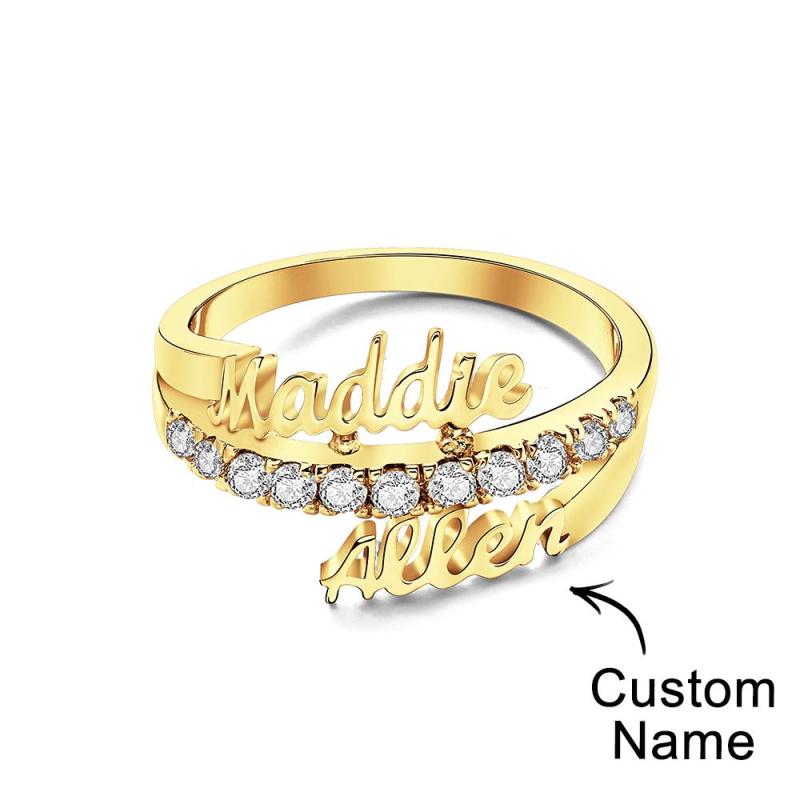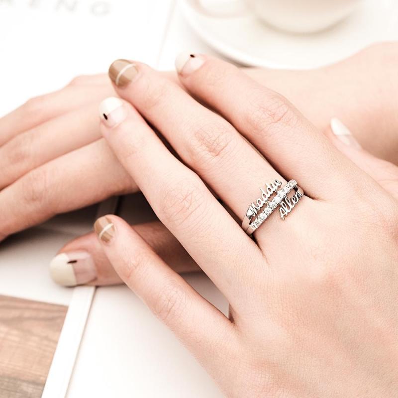Este impressionante anel com nome duplo é o presente perfeito para casais, mães e filhas. Feito em ouro e prata, ele vem em três opções de cores folheadas para garantir o ajuste perfeito. O tamanho do anel é ajustável de US 7 a 13. Mostre à sua pessoa especial o quanto ela significa para você com esta joia especial.