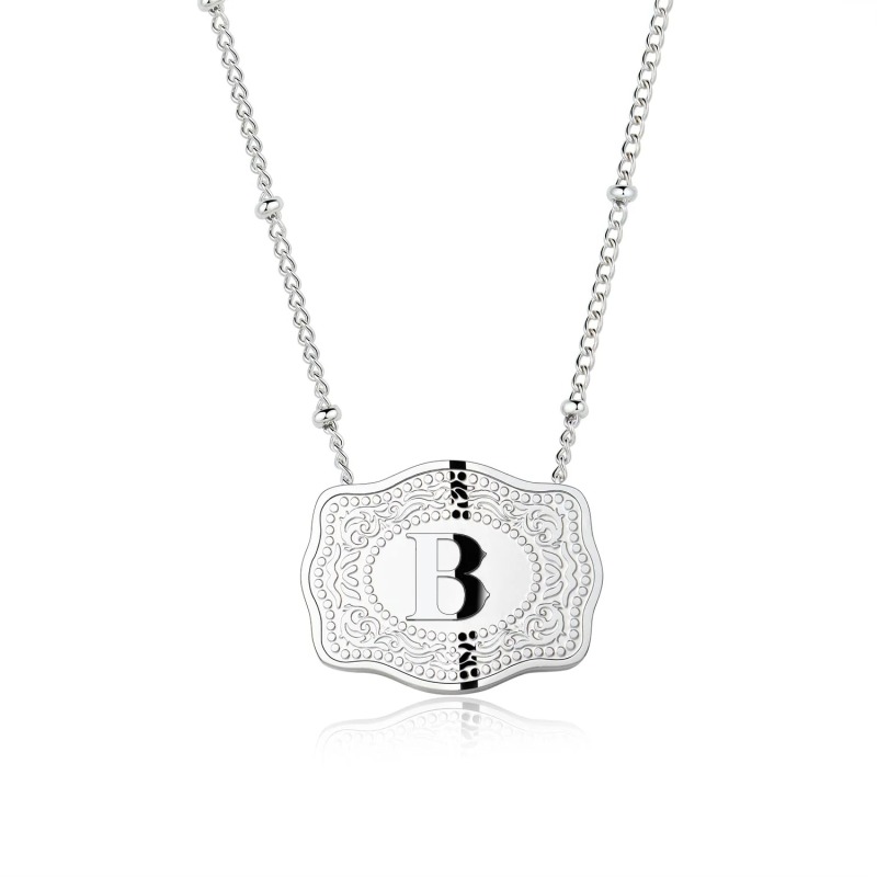 Os colares com pingente de inicial em fivela de cinto apresentam um delicado pingente de latão suspenso em uma corrente refinada inspirada em fivelas de cinto. Cada colar exibe um elegante pingente com a inicial, equilibrando a elegância minimalista com um toque de charme vintage. O colar delicado assenta graciosamente na clavícula, tornando-se um acessório versátil que combina facilmente com looks do dia a dia ou produções mais sofisticadas. Feito de latão com um acabamento antigo e quente, este colar com pingente adiciona um toque sutil e personalizado a qualquer estilo.