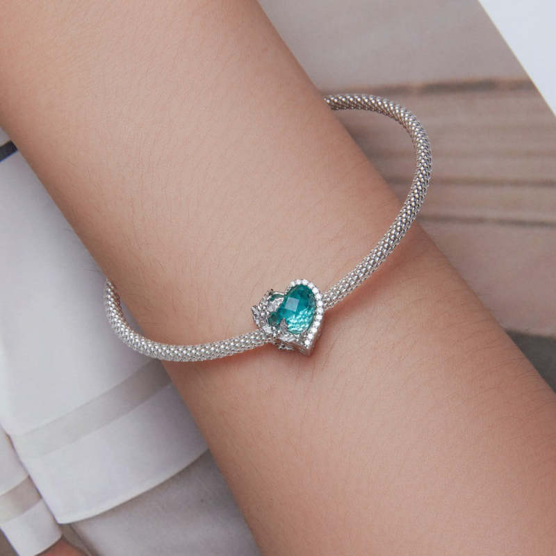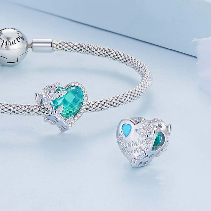 Conta de dezembro Birthstone Lake Blue prata